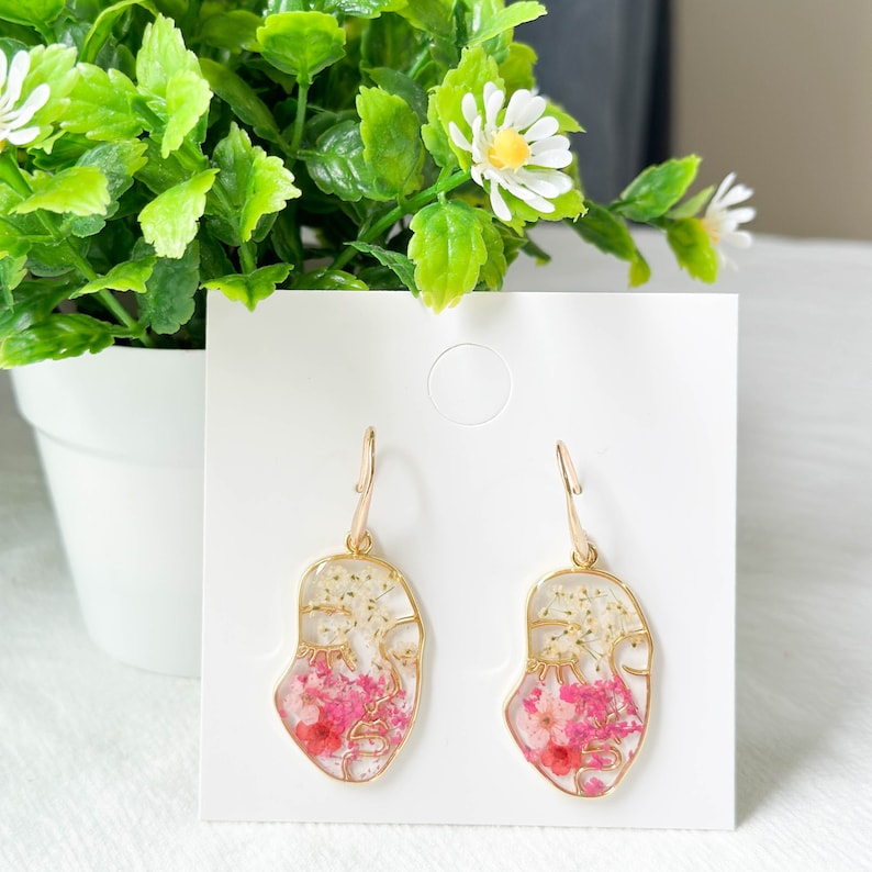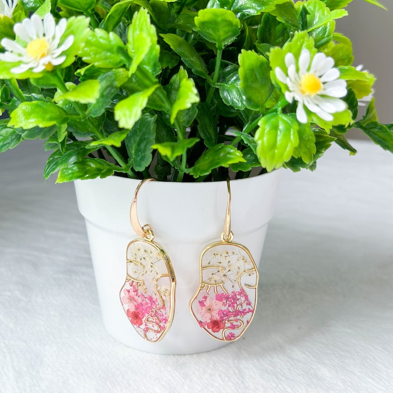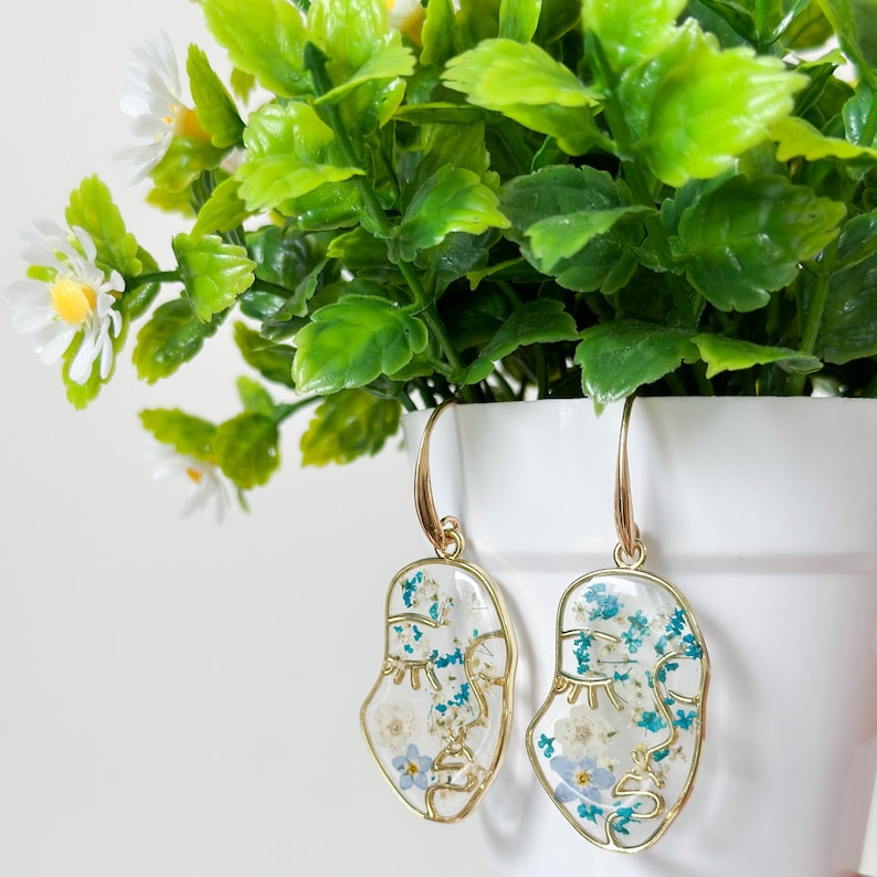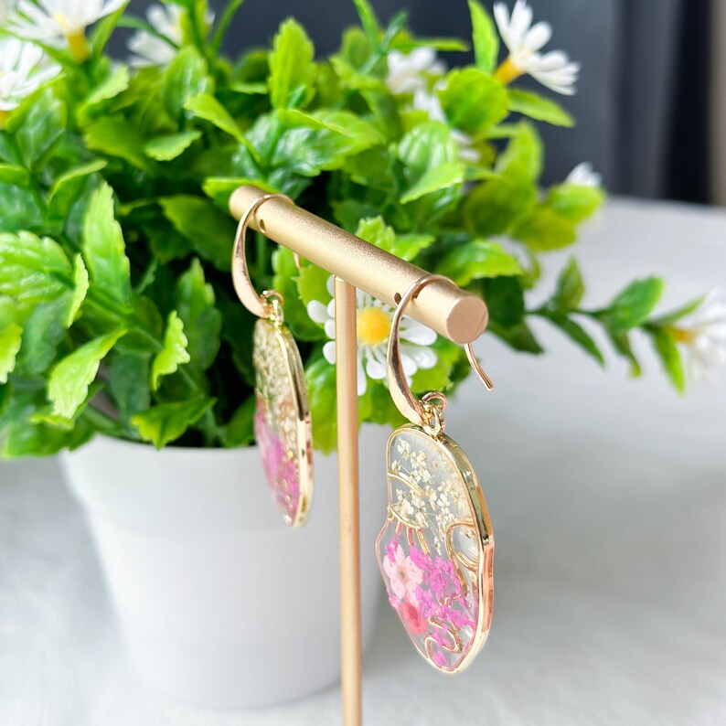 Material: Metal Plated and real pressed flower Size: 40*23 mm / 1.57*0.9 in 1 piece pendant, not including earhook or chain