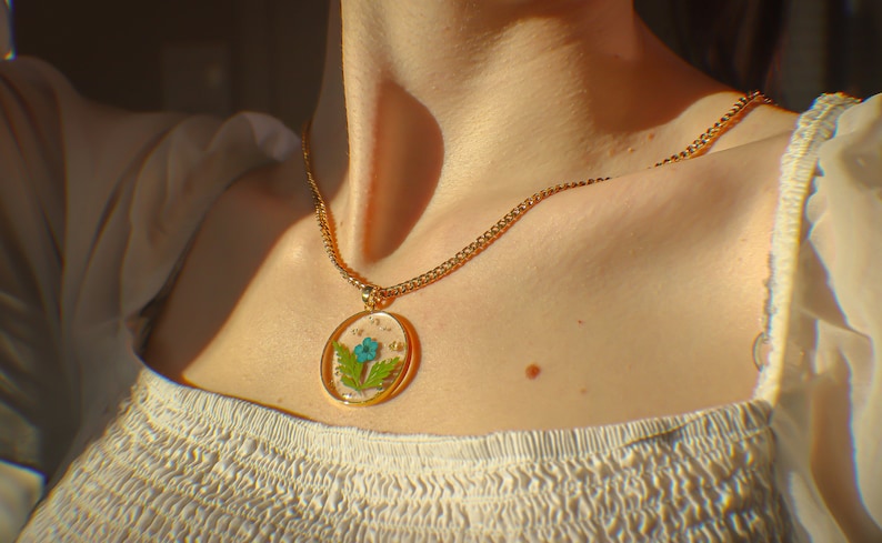 Birth Month Flower Necklace, STAINLESS STEEL Real Dried Flower Pendant, Gift for Plant Lady, Birthday Gift, Gift for Mom, Christmas Gift.