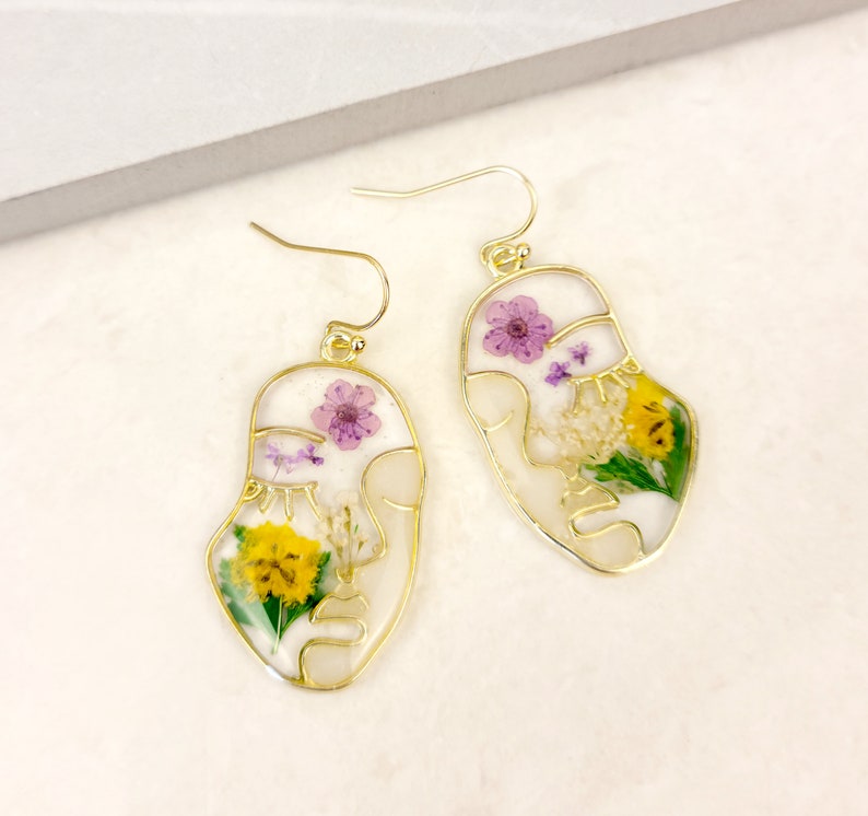 Botanical Pressed Flower Earrings, Pressed flowers Face Resin Earrings, Real Flower , Nature Jewelry mothers day, gifts for her