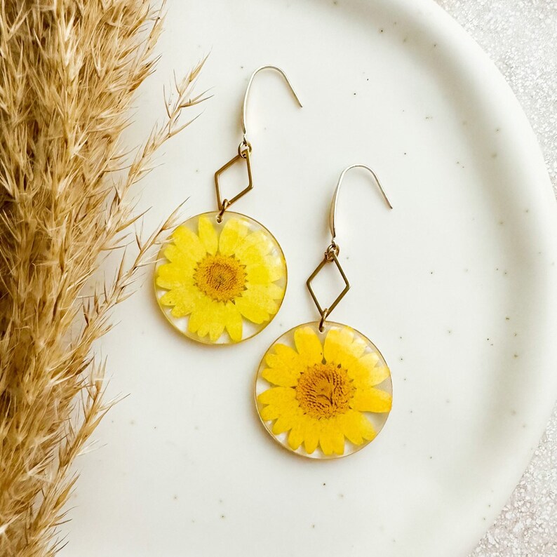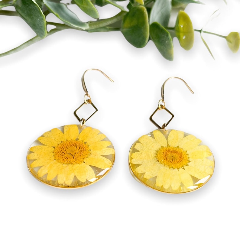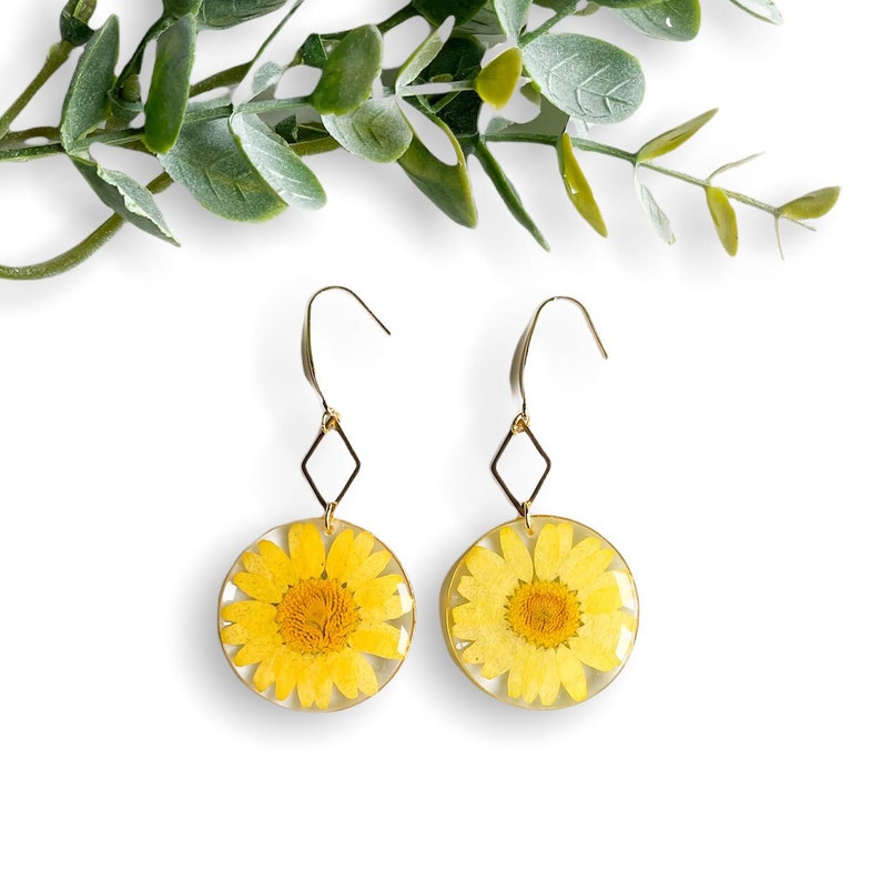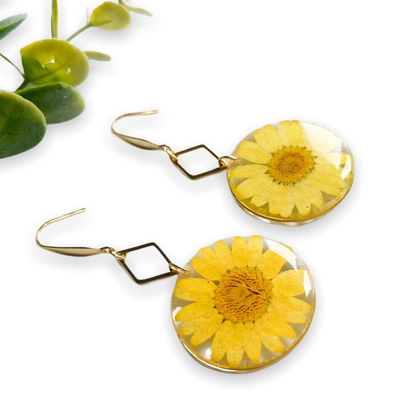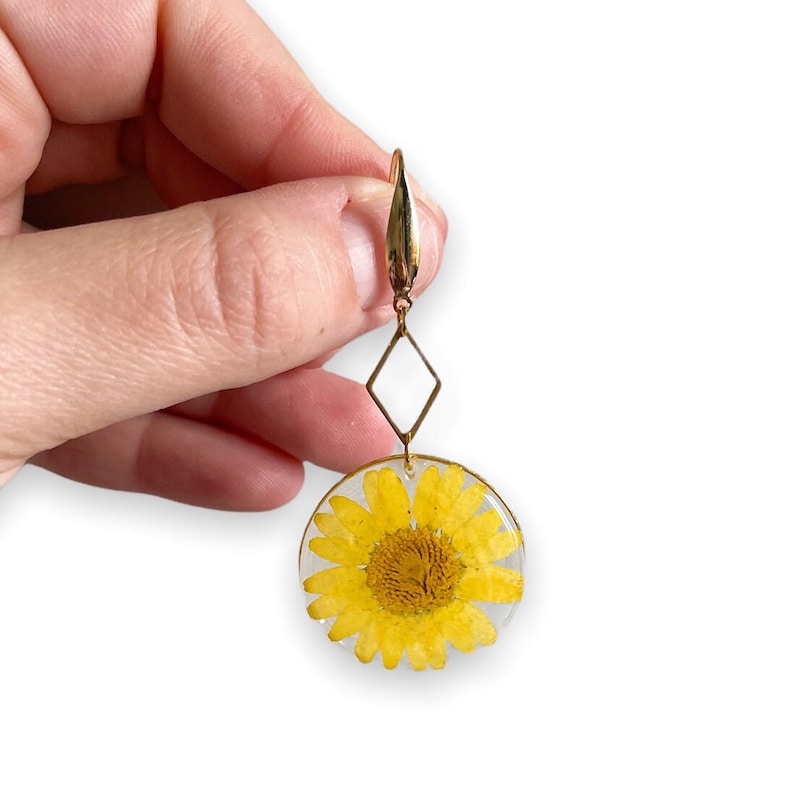 Daisy earrings, flower woman earrings, resin earrings, earrings with real flowers, stainless steel earrings, gifts for her