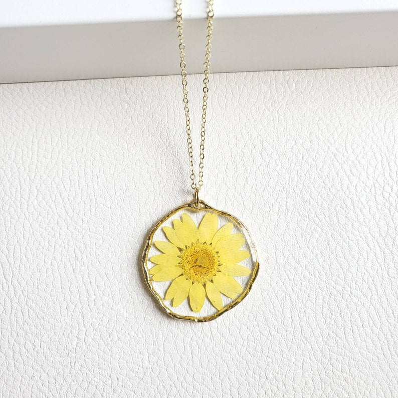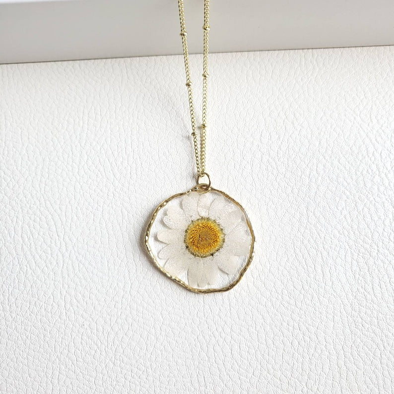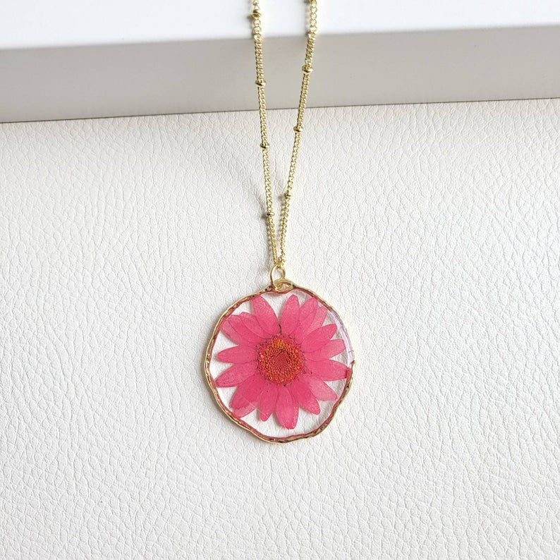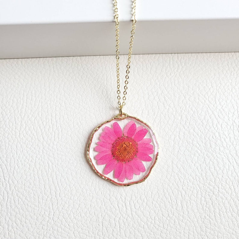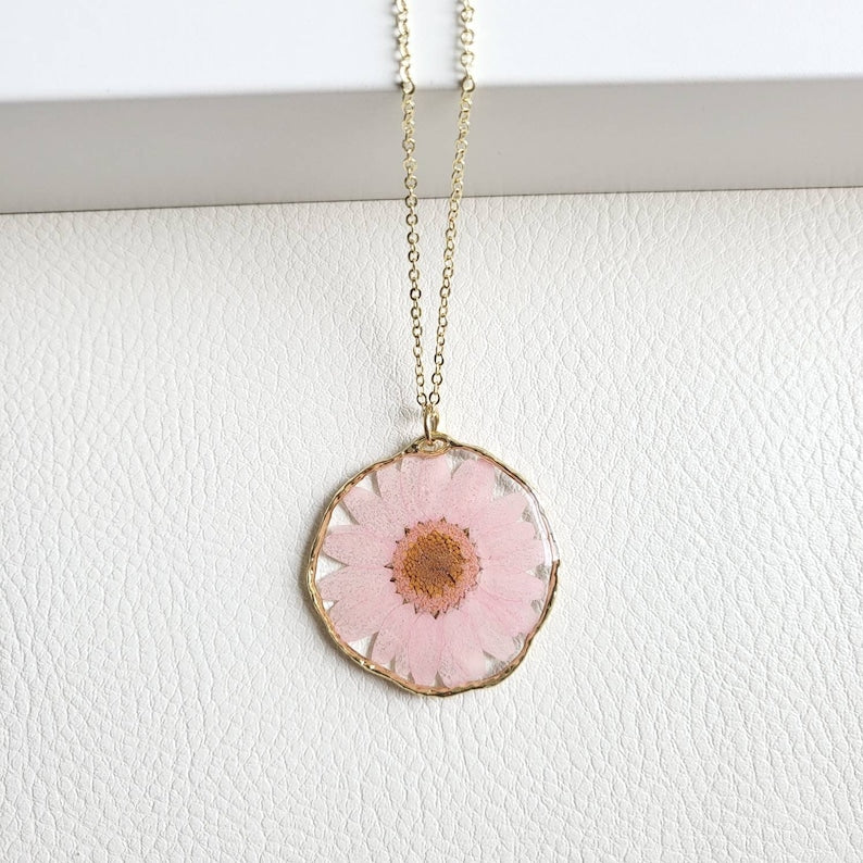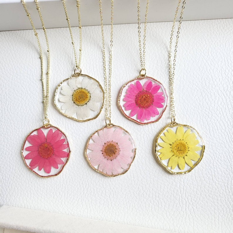 April Birth Flower Necklace, Pressed Flower Necklace, Dried Flower Jewelry, Flower Resin Jewelry, Handmade Gifts for Her