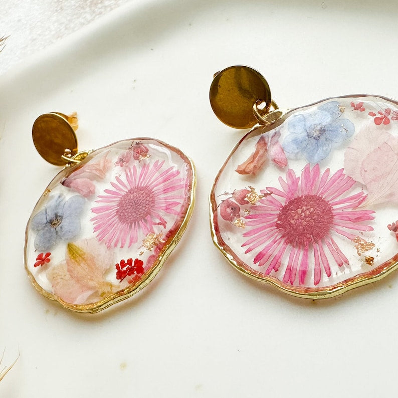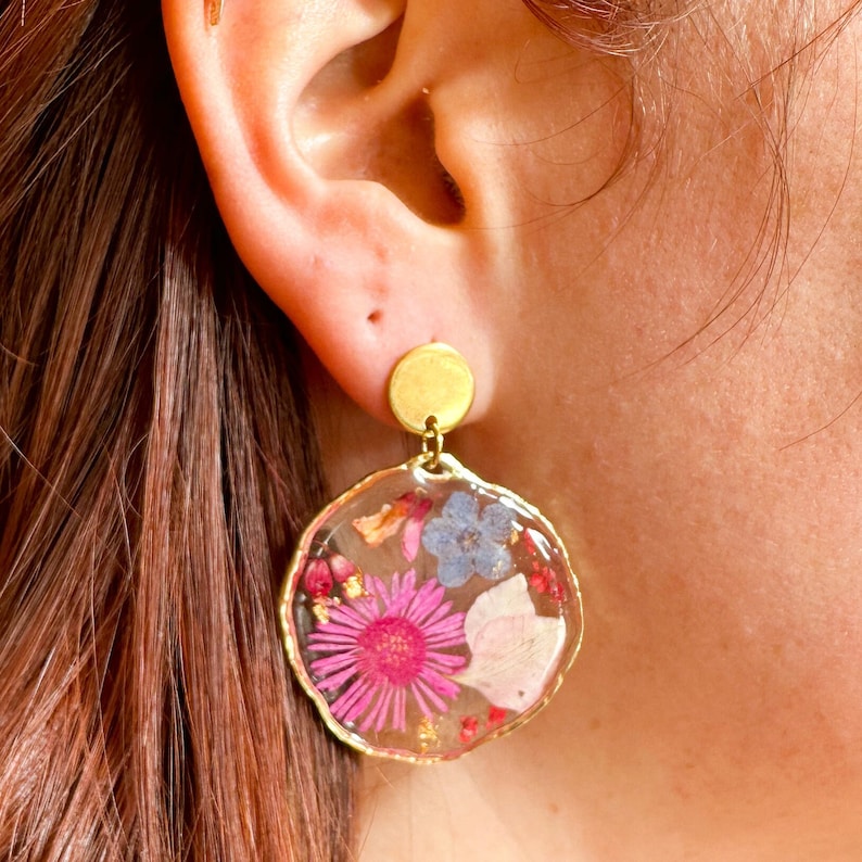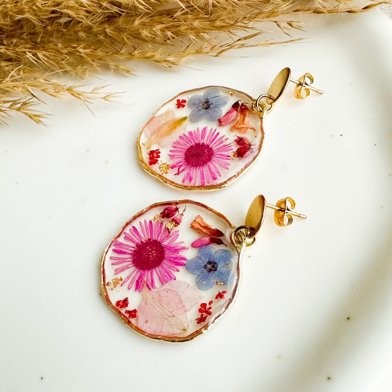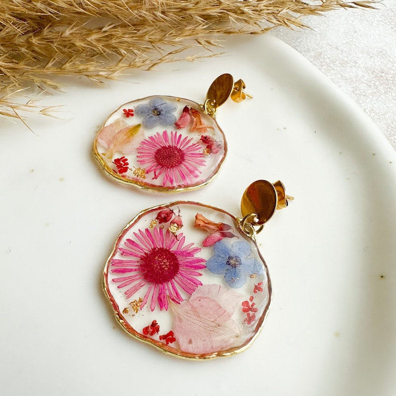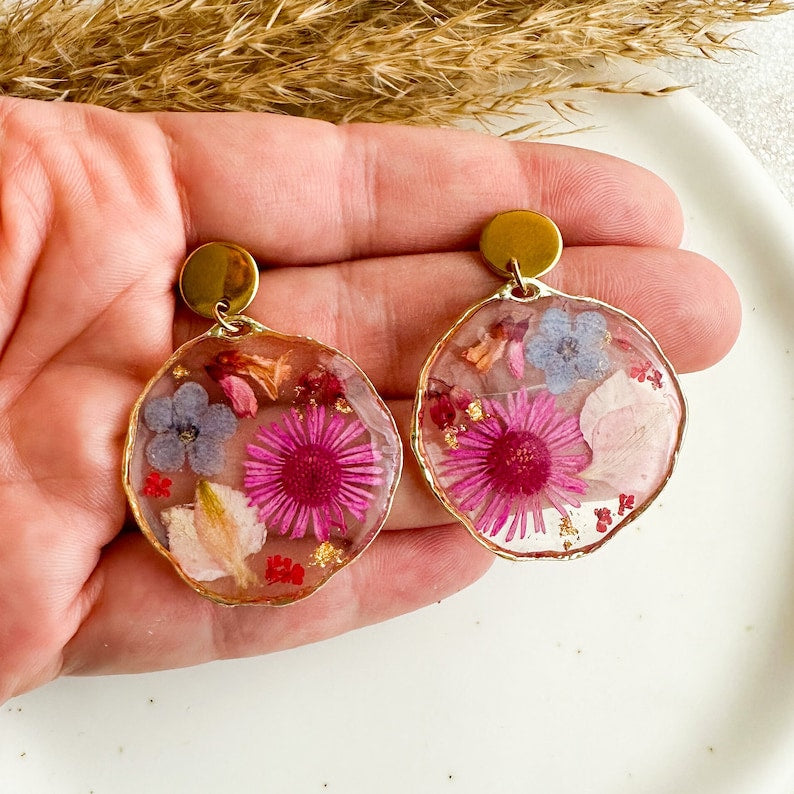 Dried flowers earrings, Resin hoop earrings, 30th birthday gift for her, Pressed flower earrings, Nature inspired jewelry