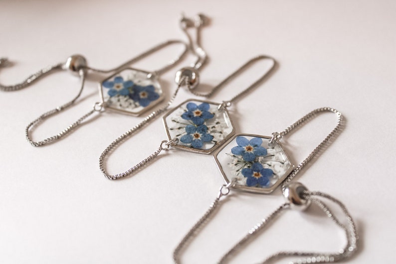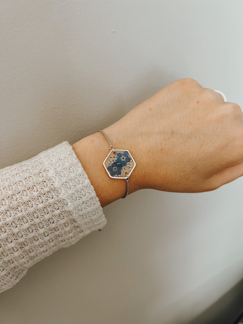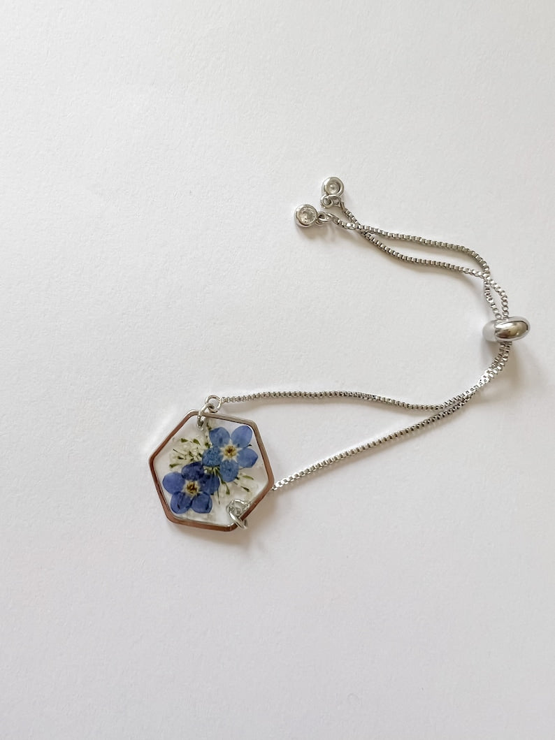 Forget-Me-Not and Queen Anne’s Lace Pressed Real Wildflower Resin Bracelet