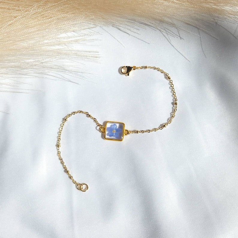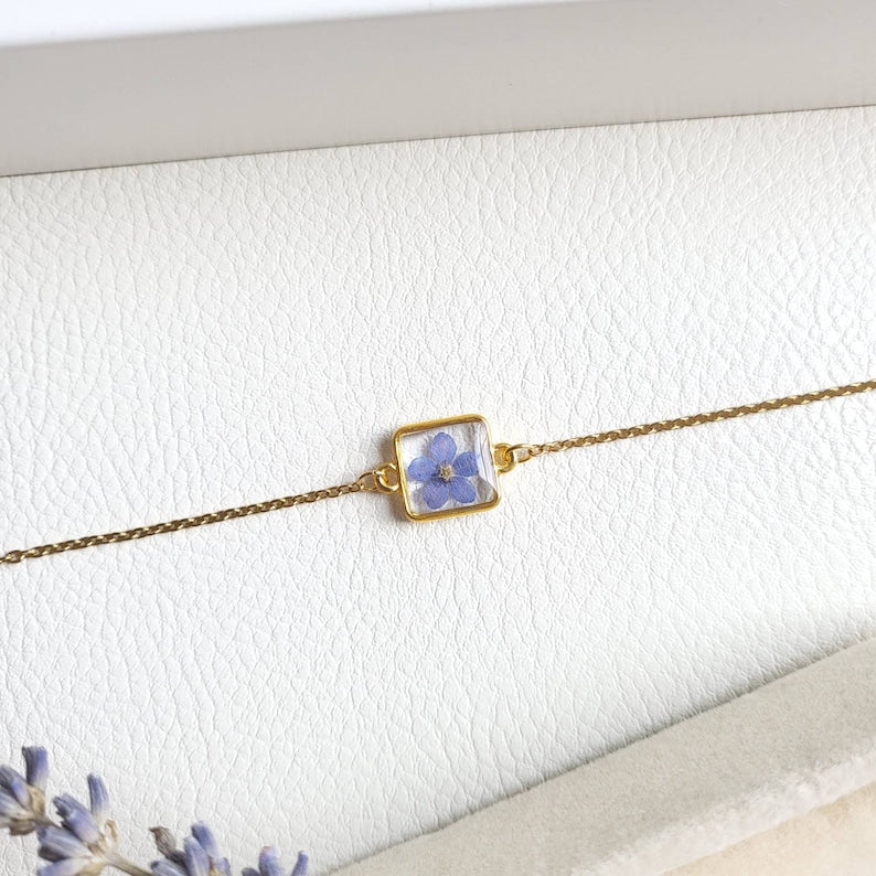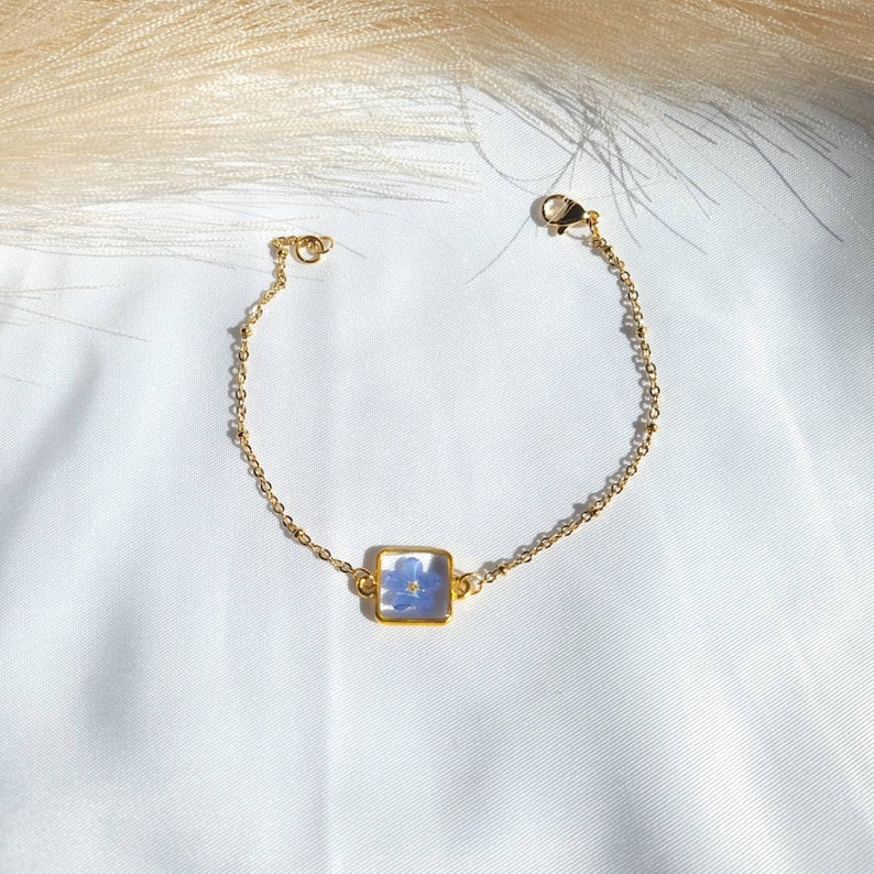 Forget Me Not Bracelet, Dried Flower Jewelry Gift for Plant Mom, Pressed Flower Bracelet for Her, Mothers Day Gift, Christmas Gift for Women