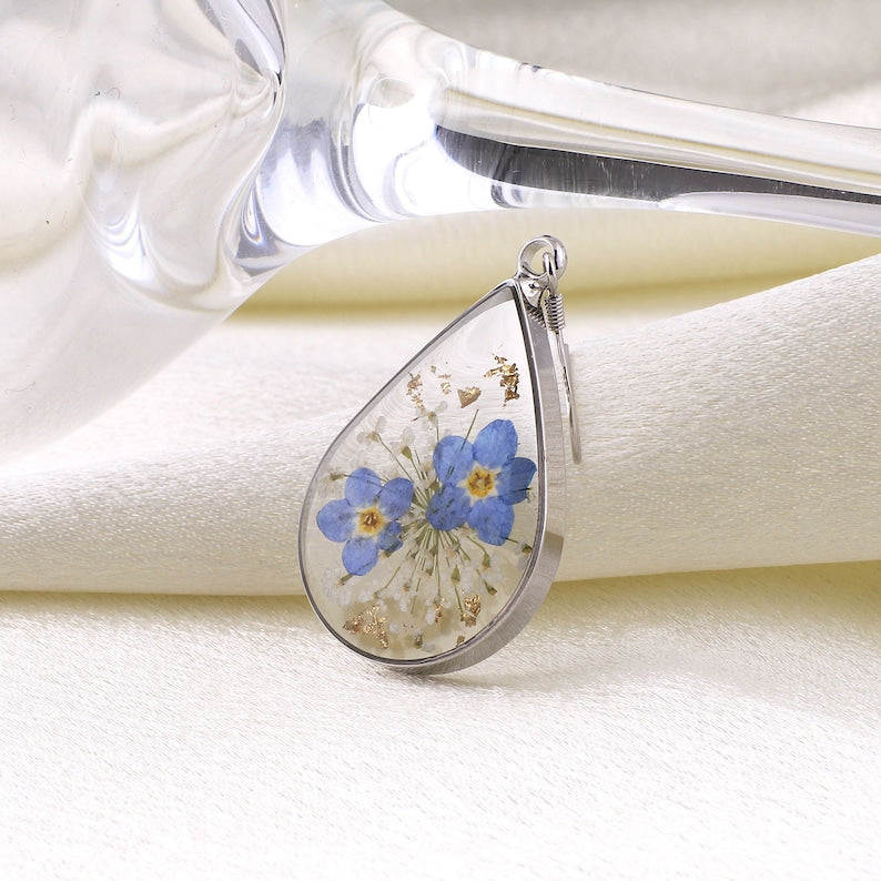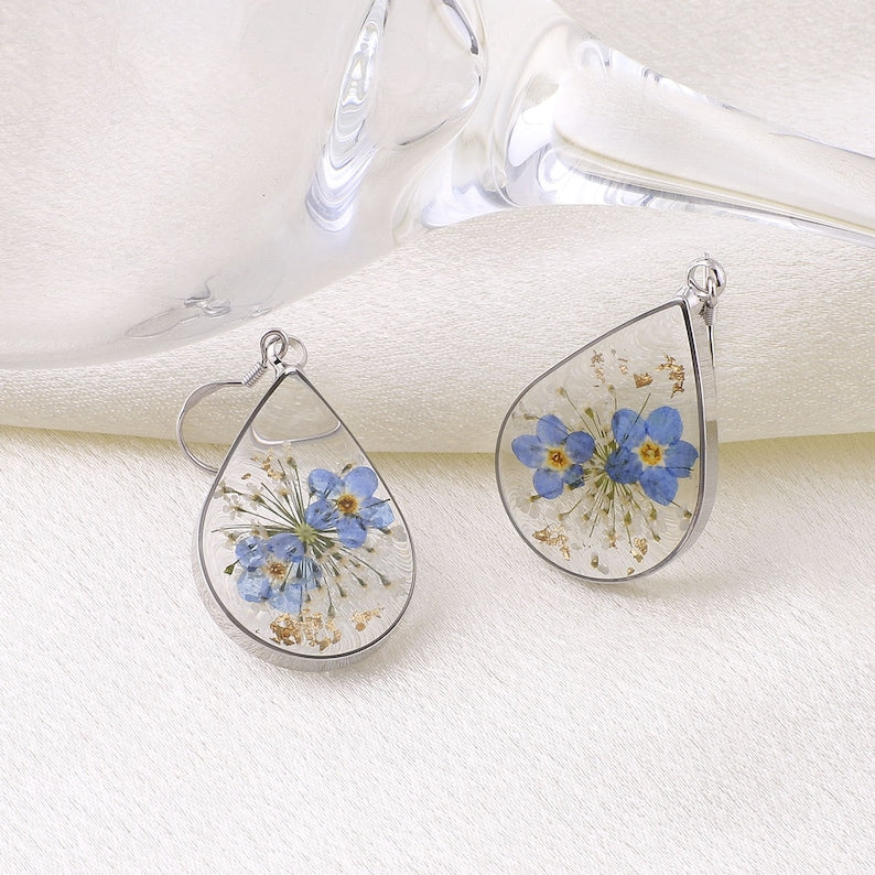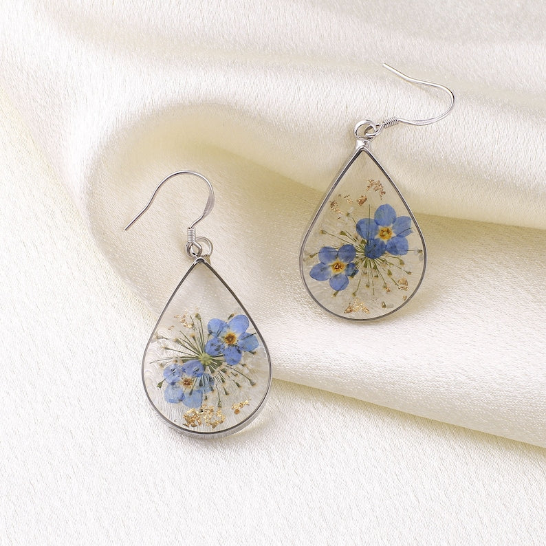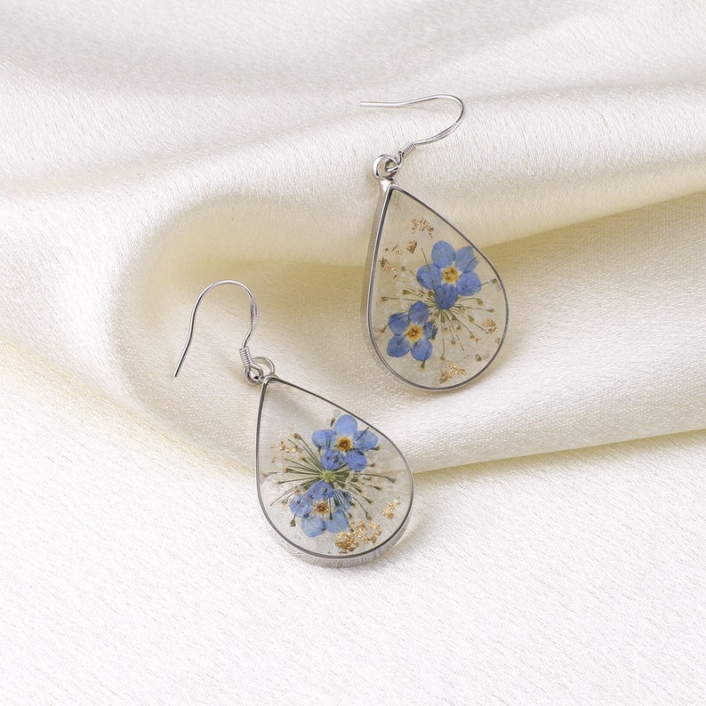 Forget-me-not Flower earrings, Dry Pressed Flower Sterling Silver Earrings, Handmade Real Flower Jewelry, Girly Gift, Non-allergenic