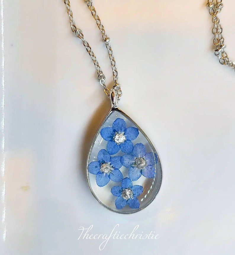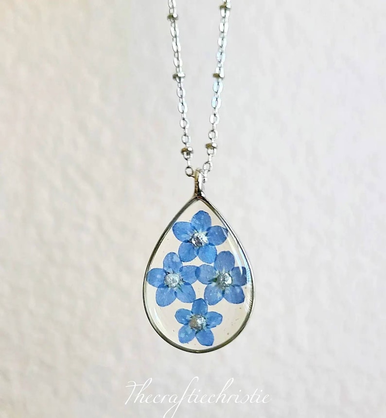 Forget Me Not Necklace-Pressed Flower Jewelry-Flower Jewelry-Real Flower Necklace-Nature Jewelry-Resin Flower-Anniversary Gift-Gift for her