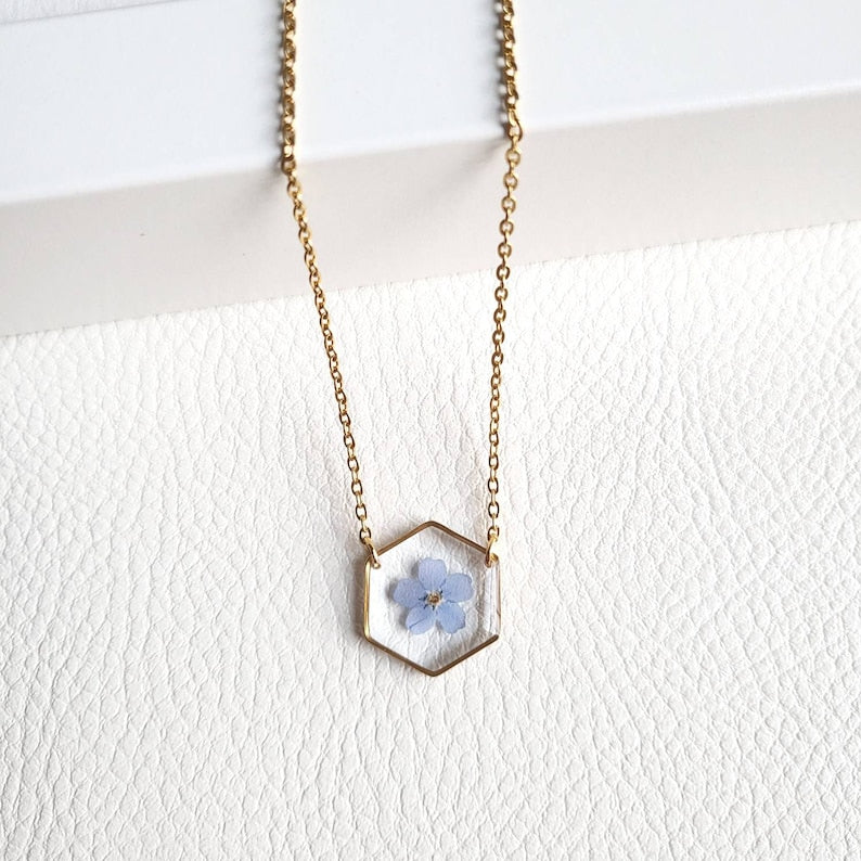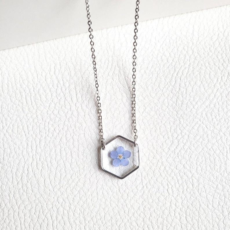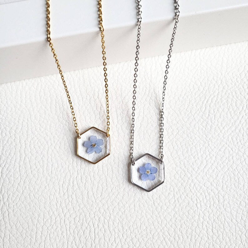 Forget Me Not Necklace, Pressed Flower Necklace, Dried Flower Jewelry, Remembrance Gift for Her, Mothers Day Gift, Christmas Gift for Women