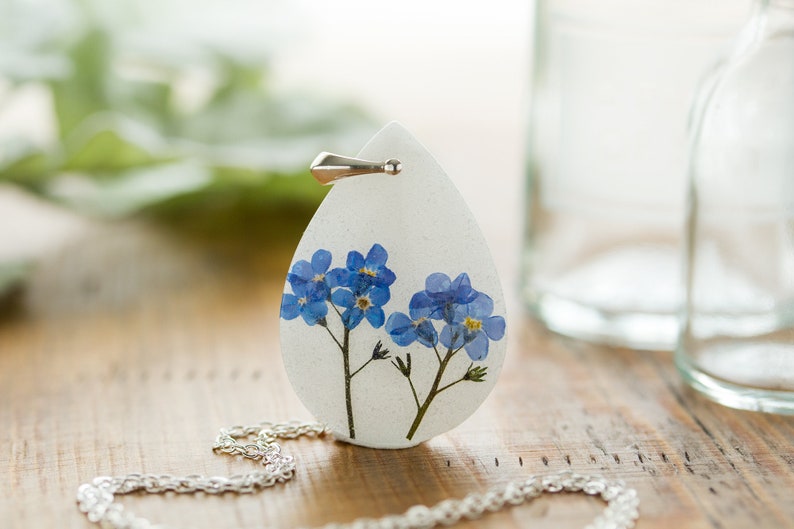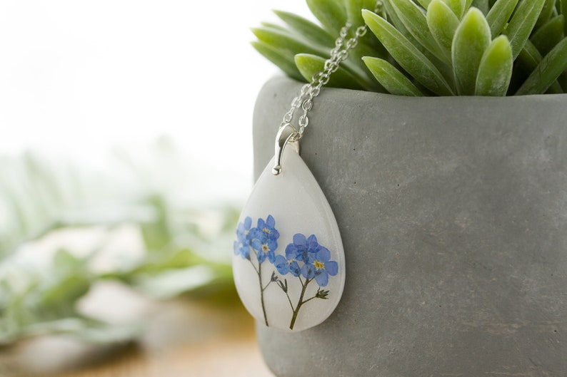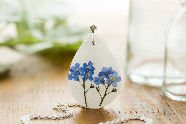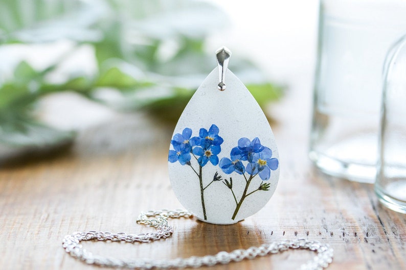 Forget Me Not Necklace / Teardrop / Real Flower Necklace / Gifts for Her / Pressed Flower Necklace / Resin Necklace / Pressed Flower Jewelry