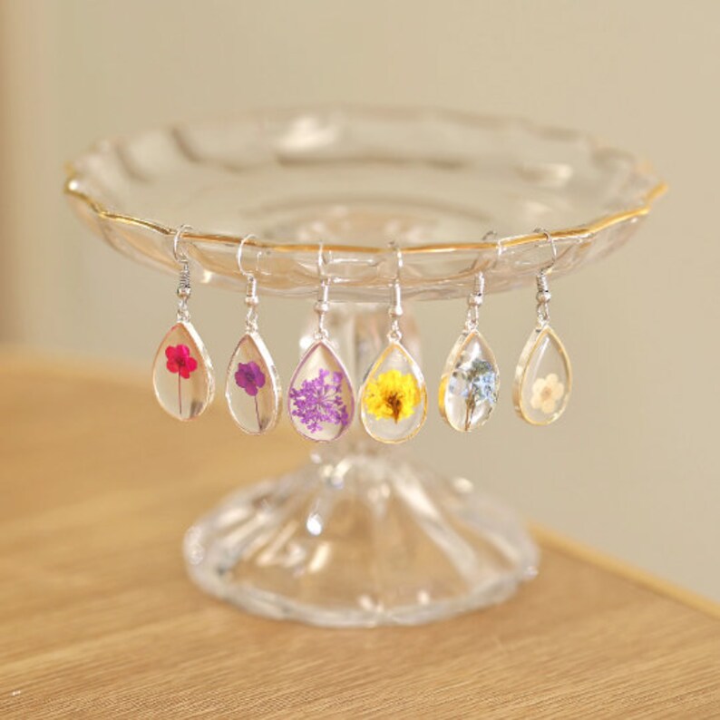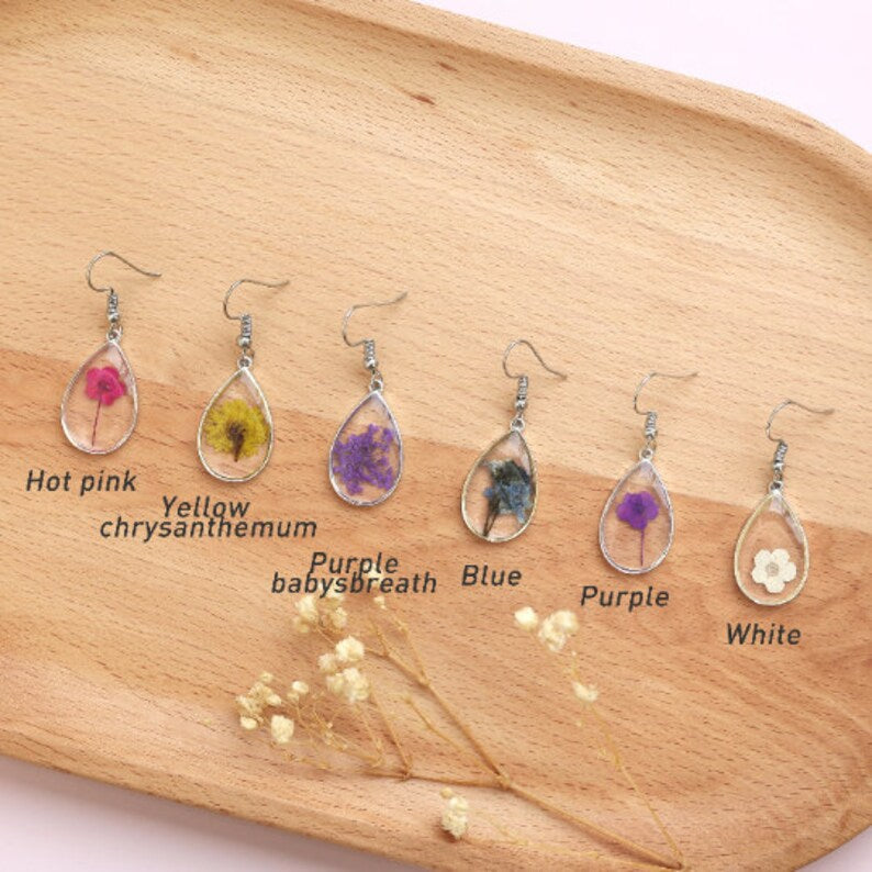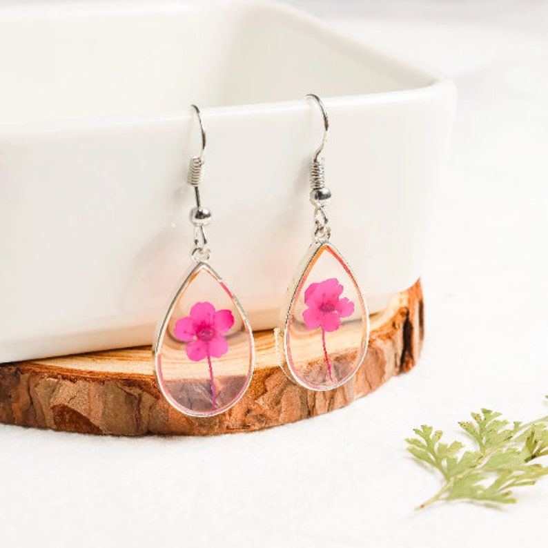 Handmade Flower Resin Earrings | Floral Pressed Flower Earrings in Hot Pink