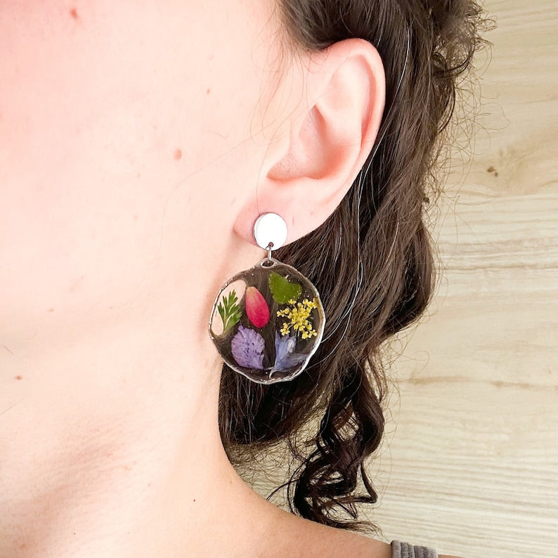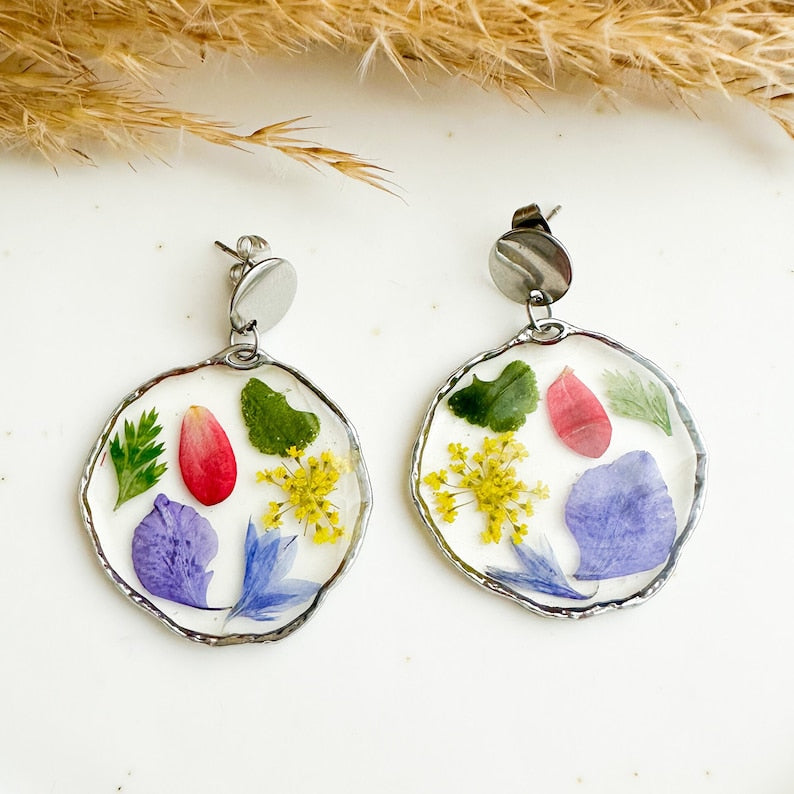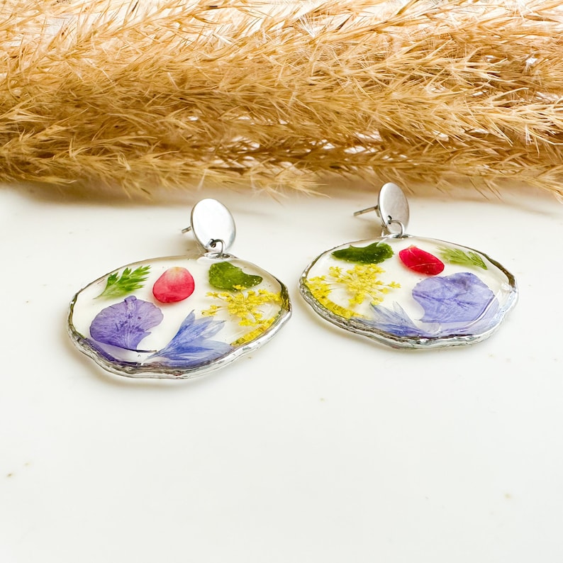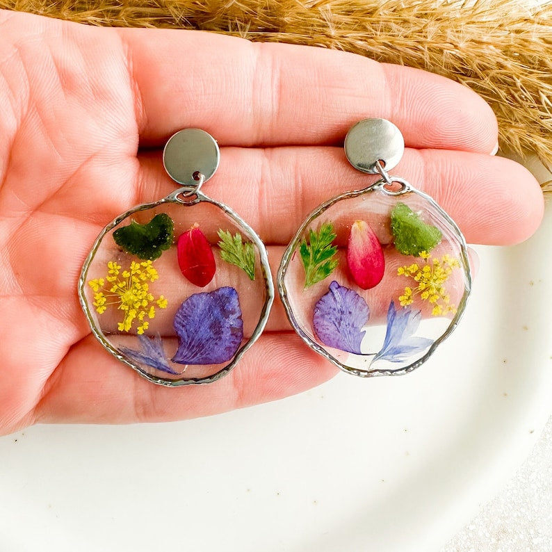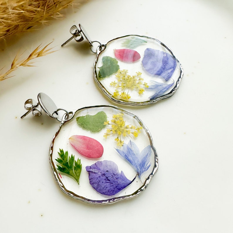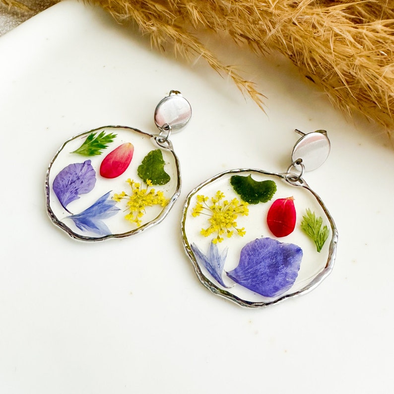 Plant earrings dangle, Handmade jewelry with real pressed flowers, Petals earrings, Resin flower earrings, Pressed flowers resin