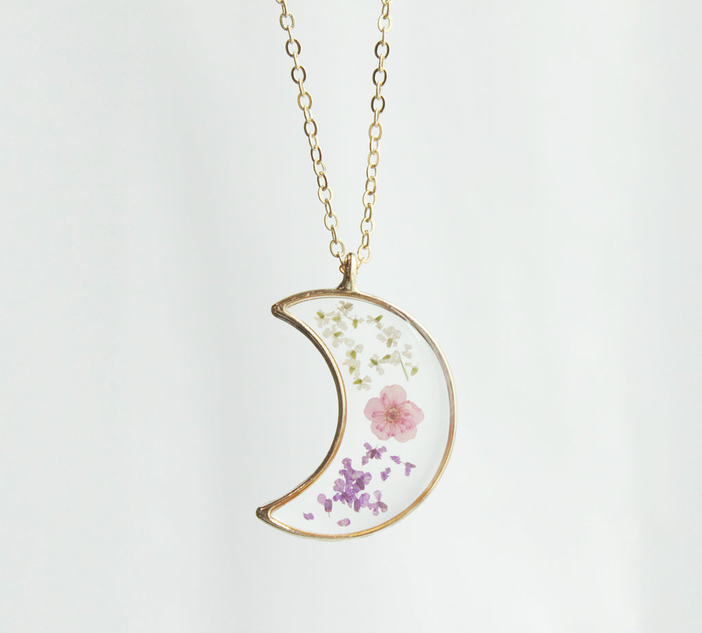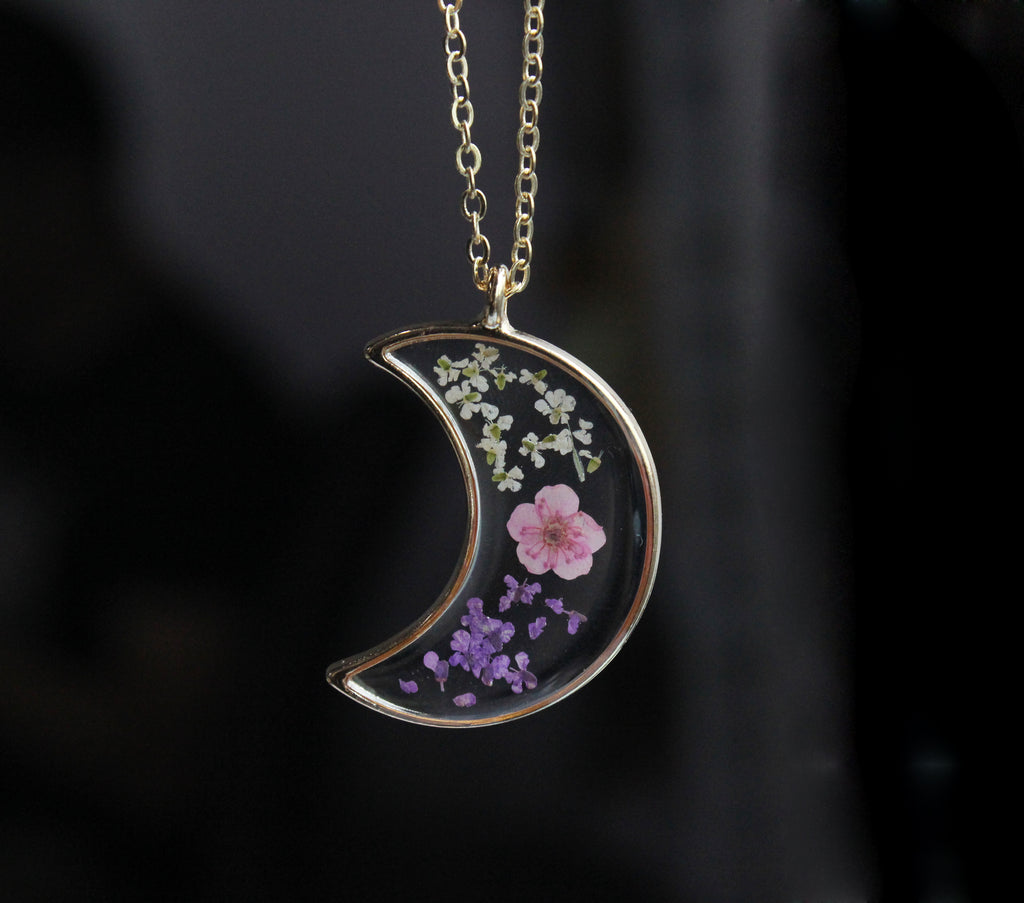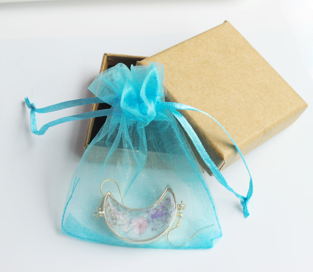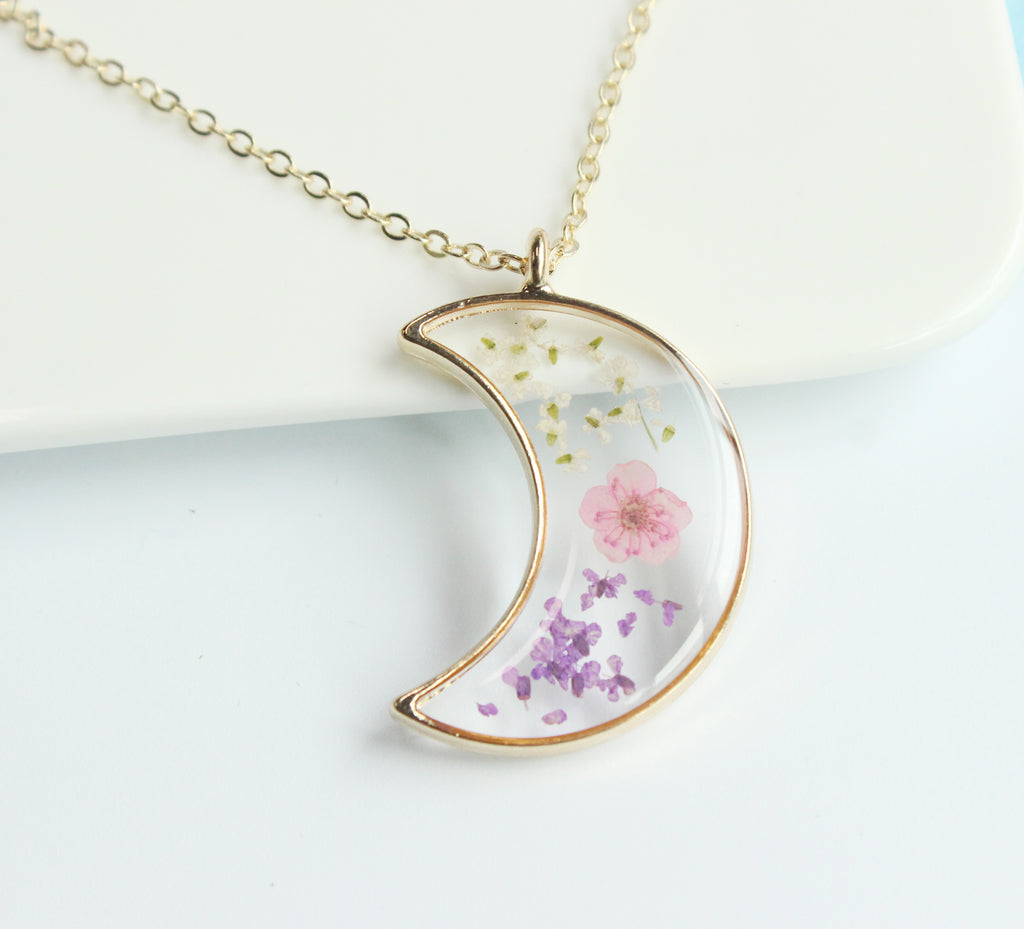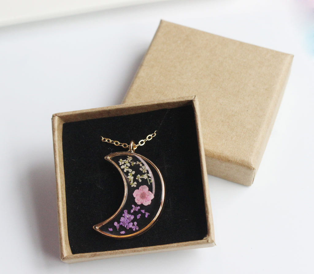 1pcs Crescent moon Pressed Flower Pendant necklace Earrings