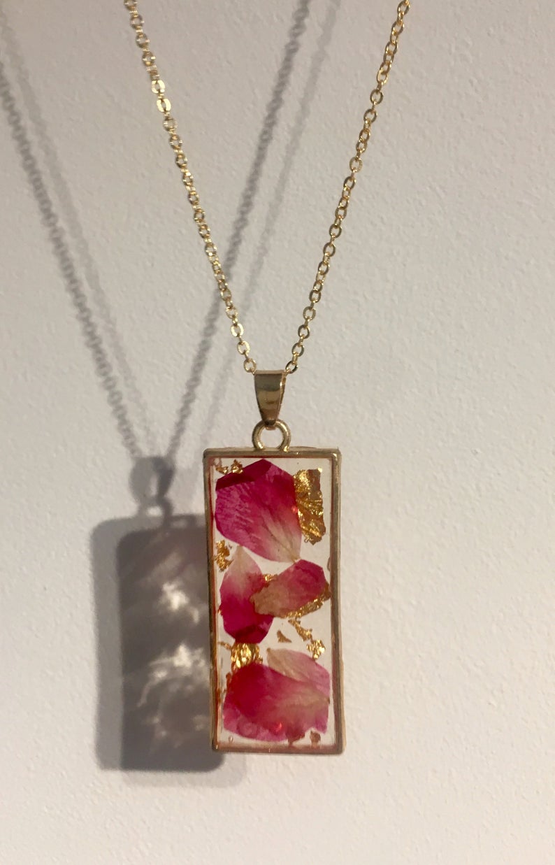 1pcs Handmade Square gold leaf rose pressed flower pendant necklace