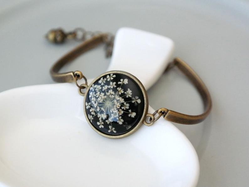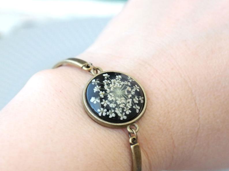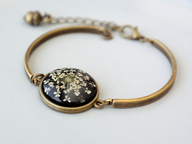 d) Material: Resin, dried flower