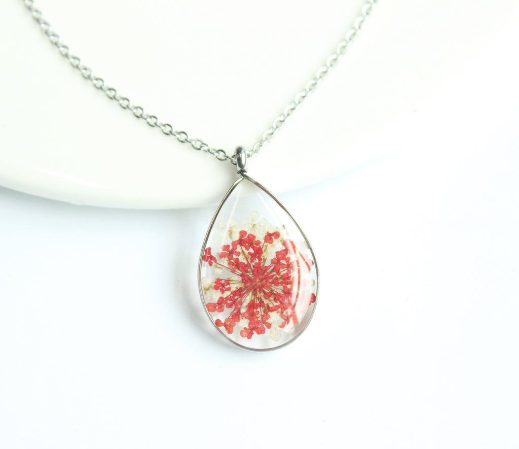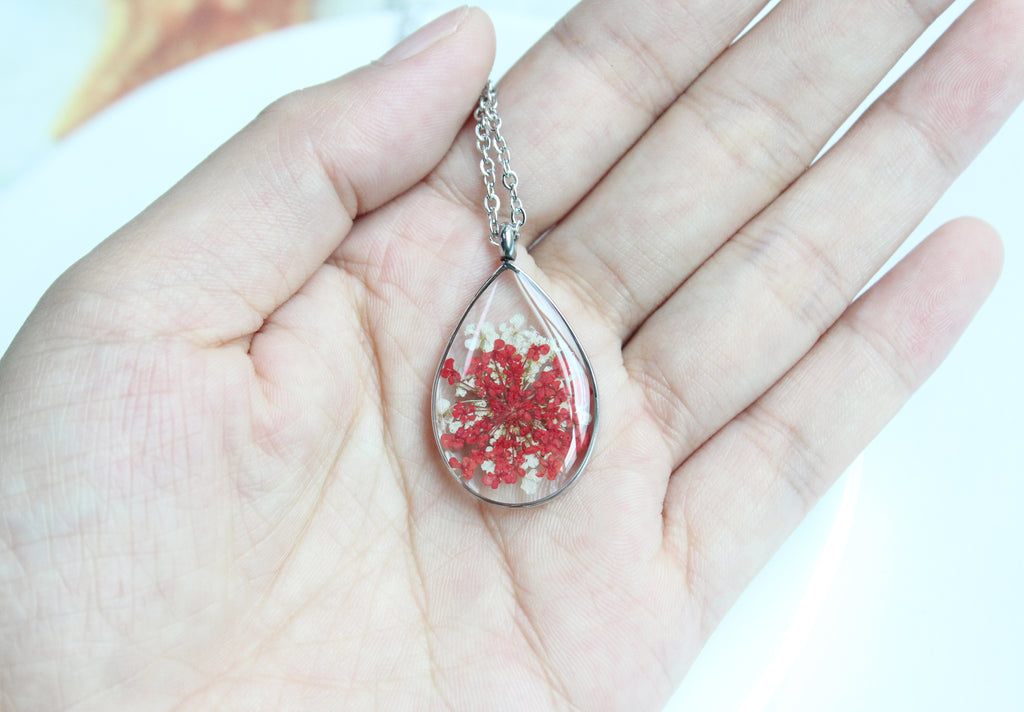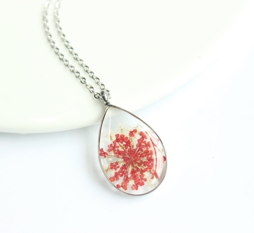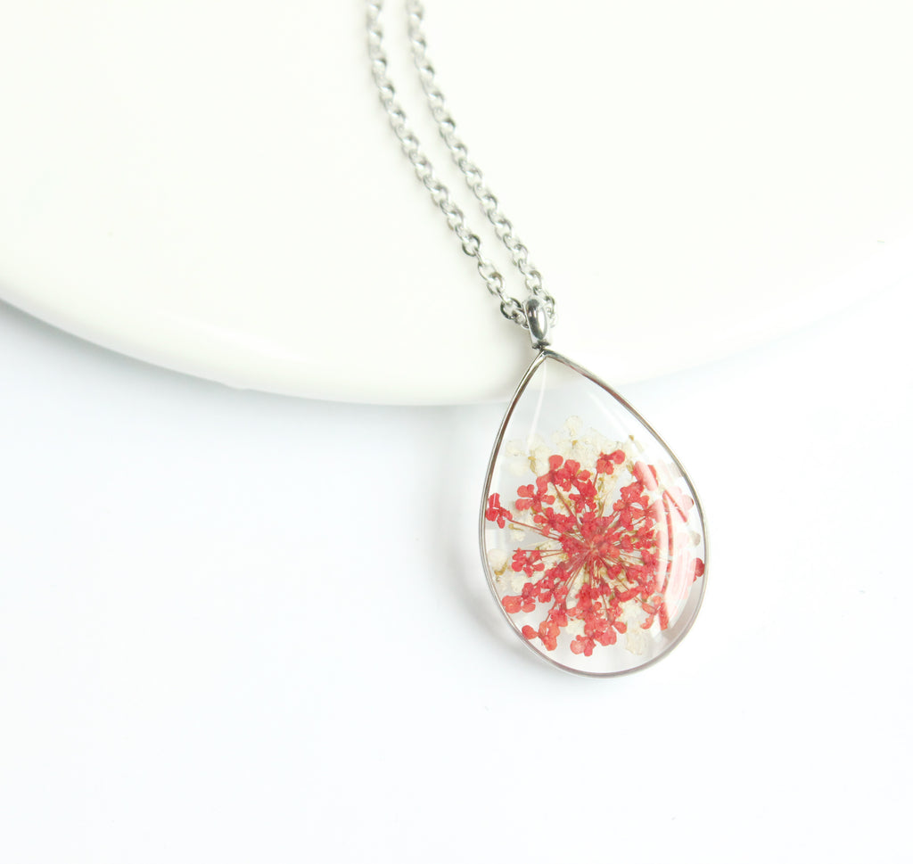 1pcs Handmade Teardrop pressed flower pendant jewelry