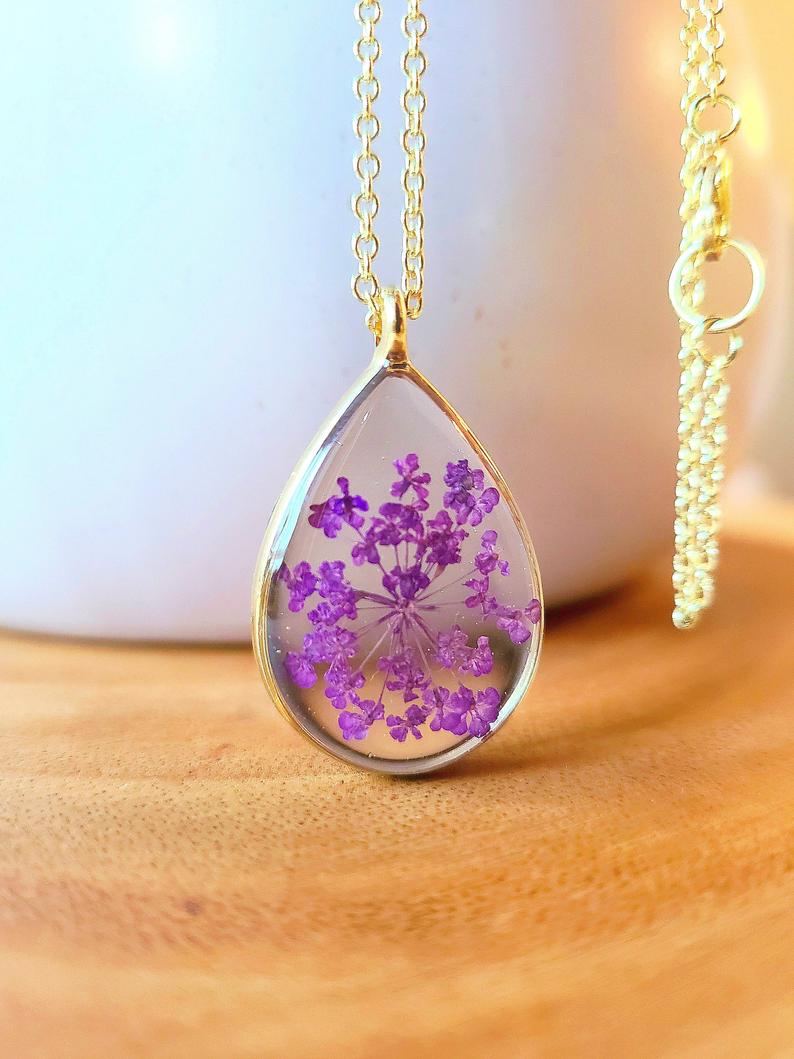 1pcs Handmade Teardrop pressed flower pendant jewelry