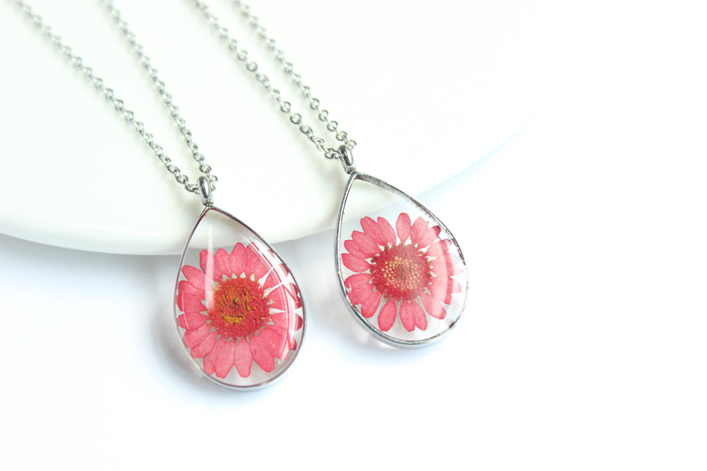 1pcs Handmade Teardrop pressed flower pendant jewelry