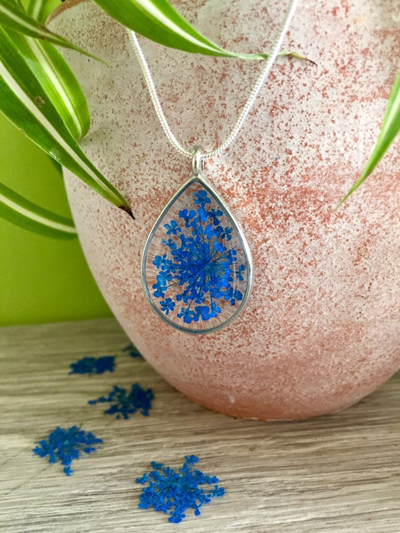 1pcs Handmade Teardrop pressed flower pendant necklace jewelry