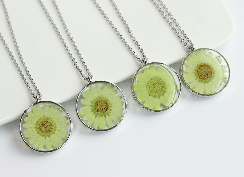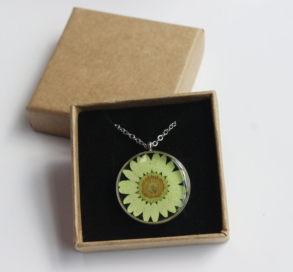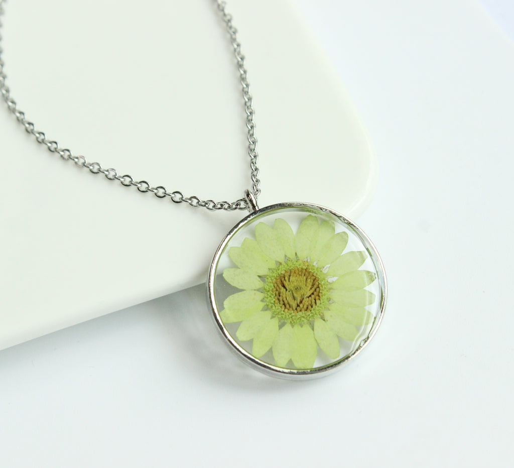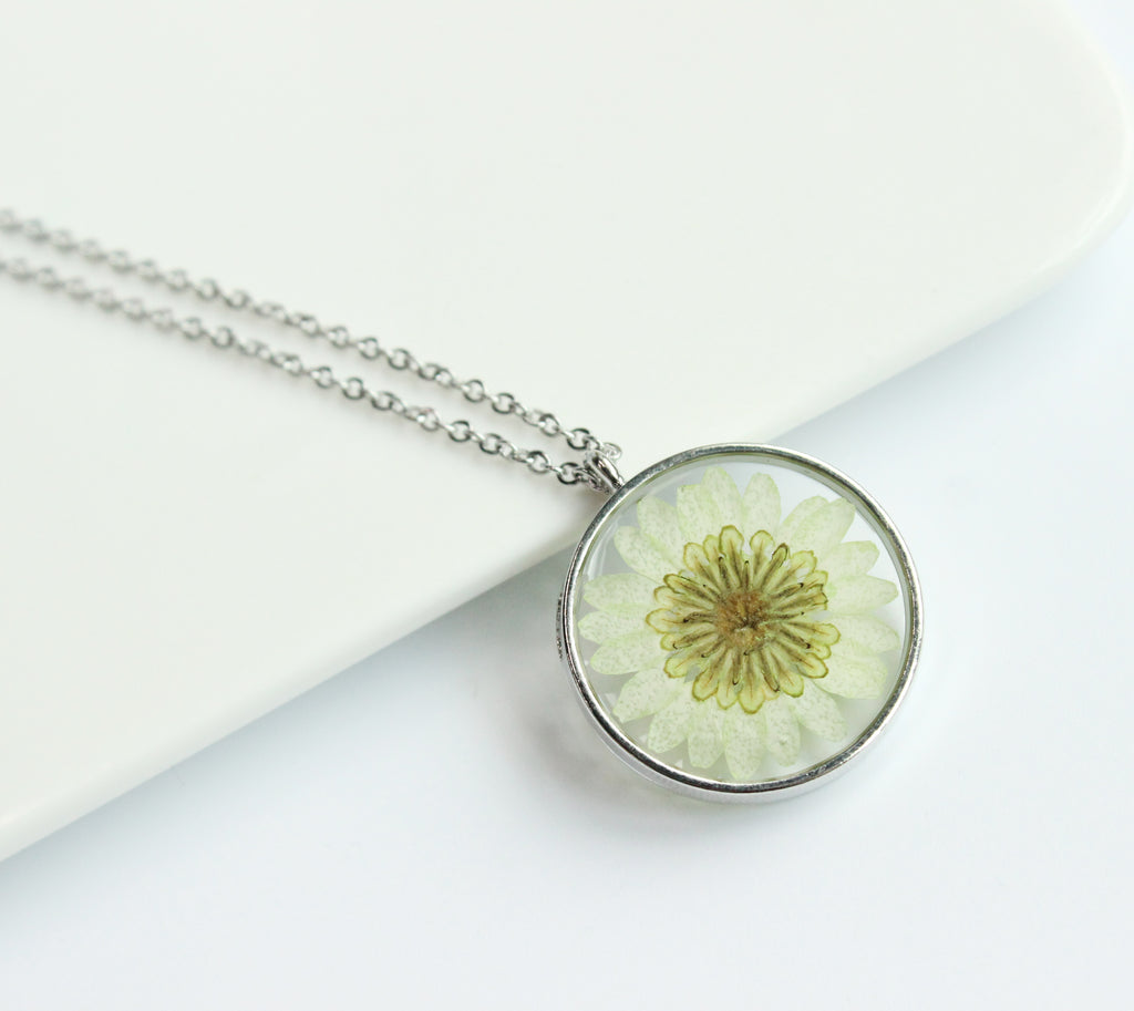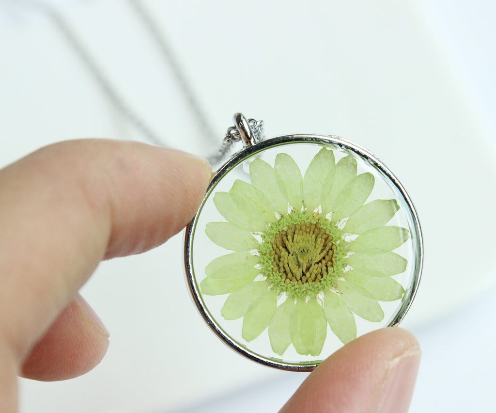 1pcs pressed flower jewelry, Real chrysanthemum pressed flower pendant necklace