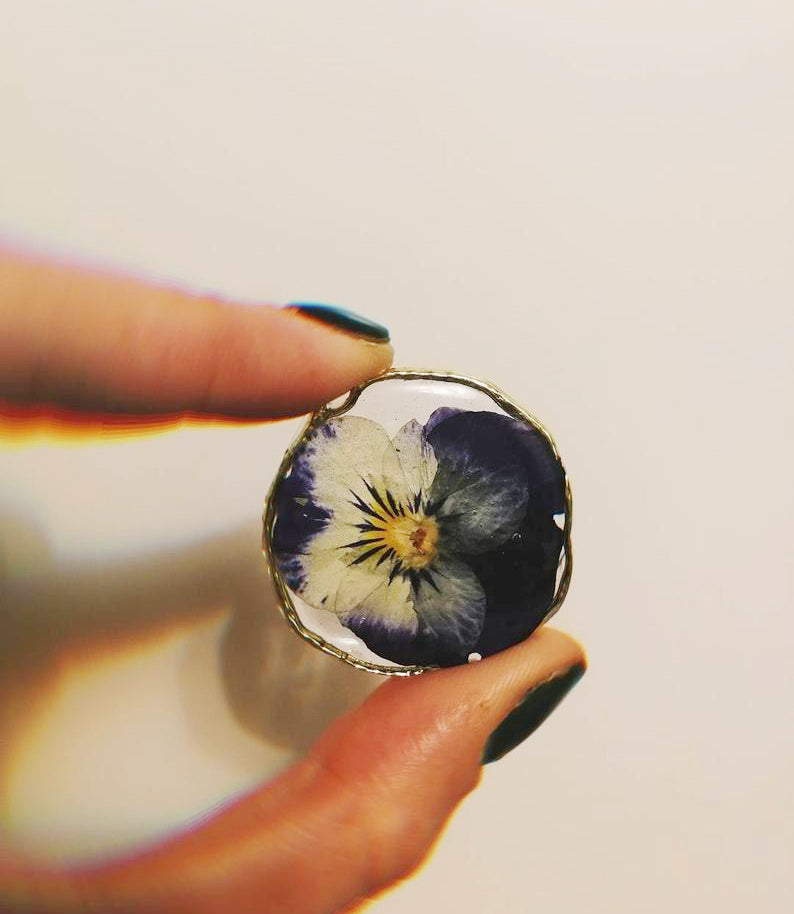 d) Material: Resin, dried flower