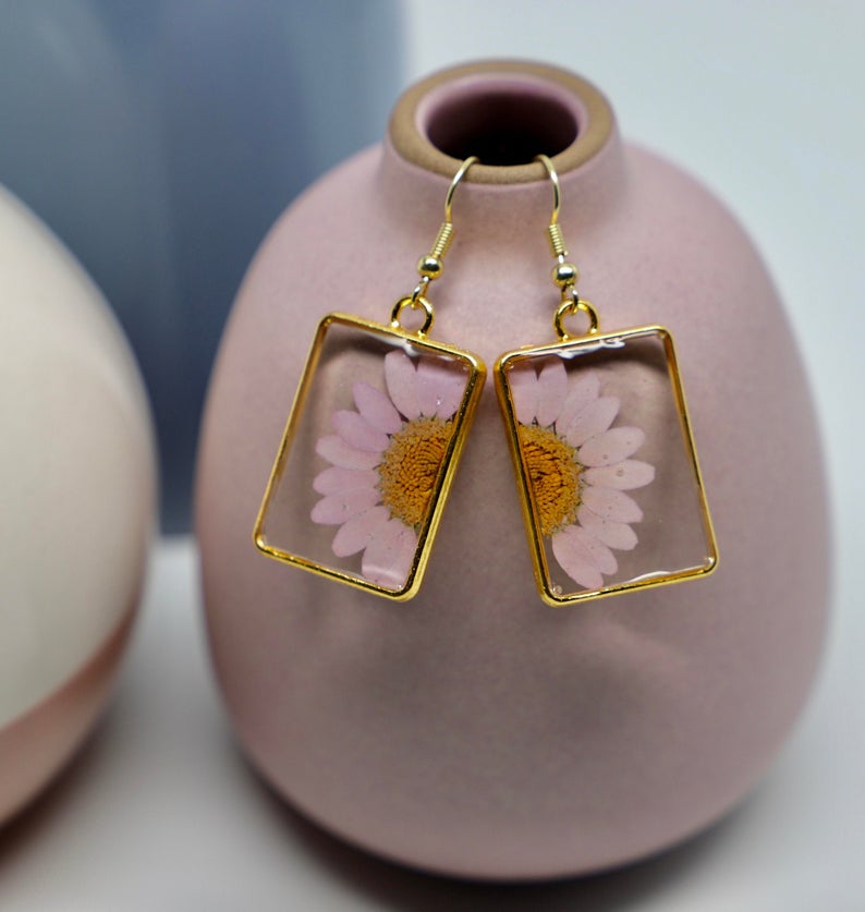 d) Material: Resin, dried flower