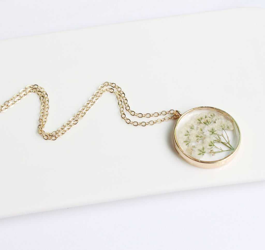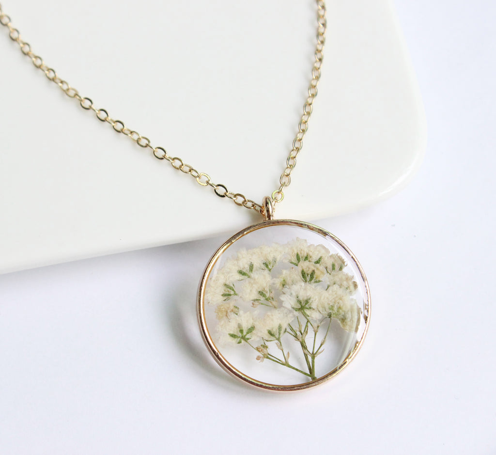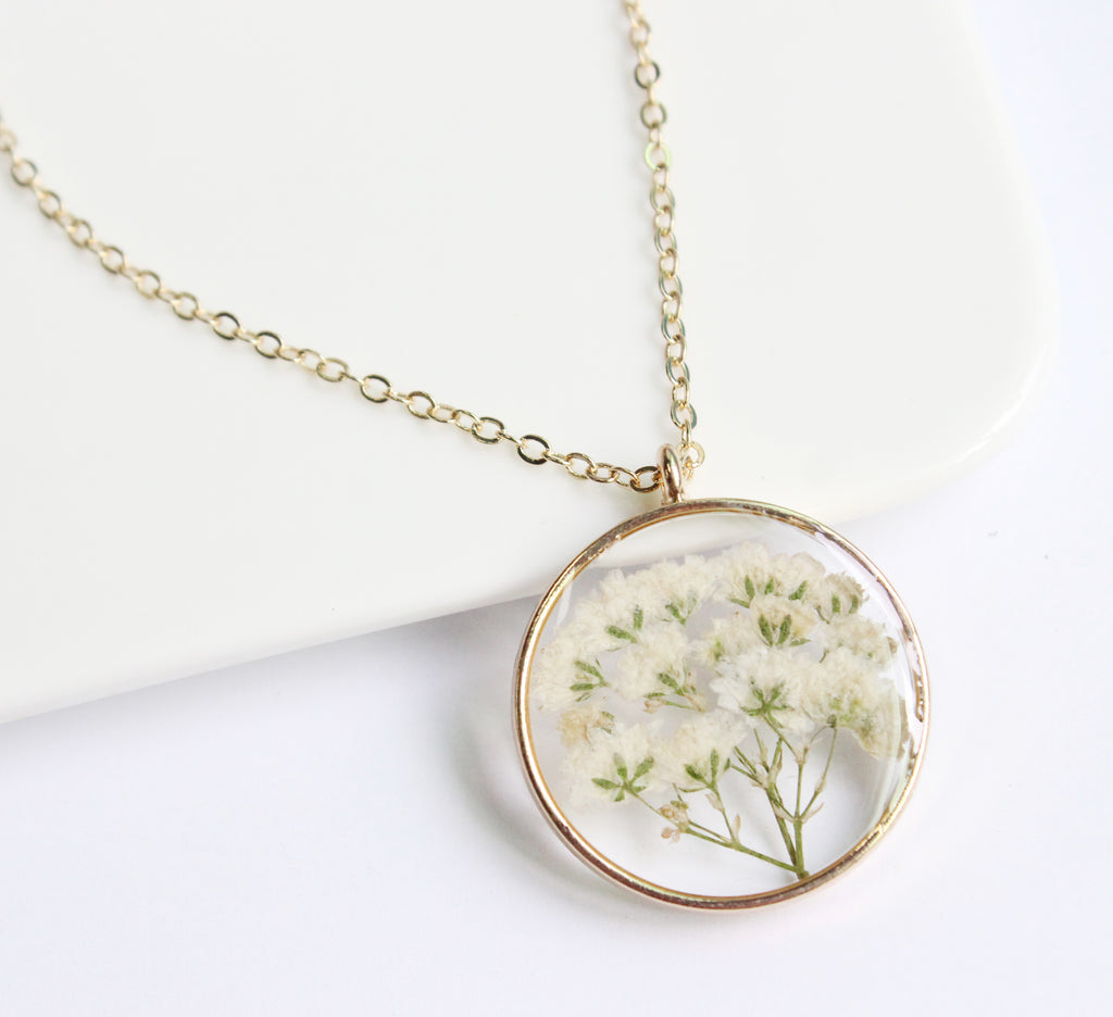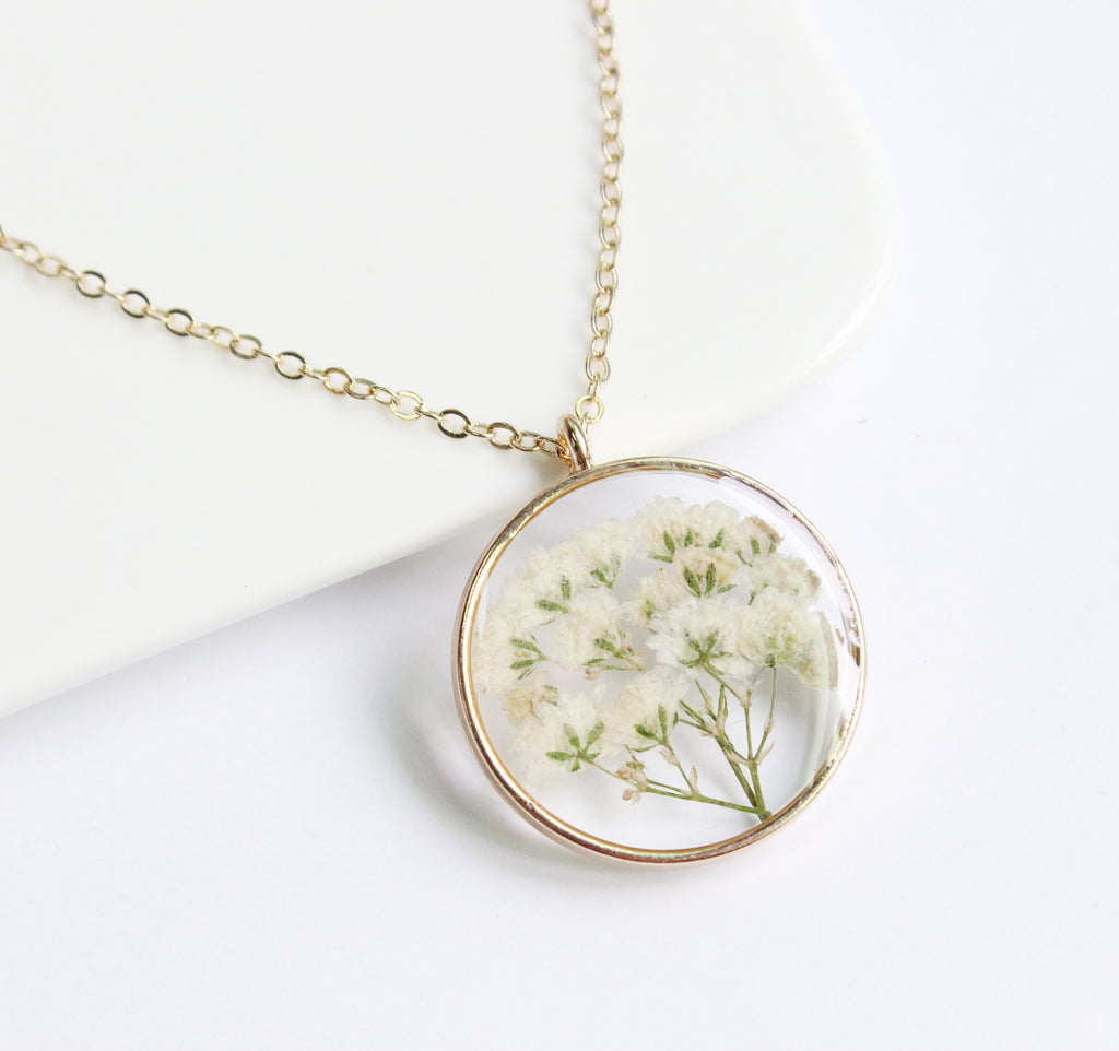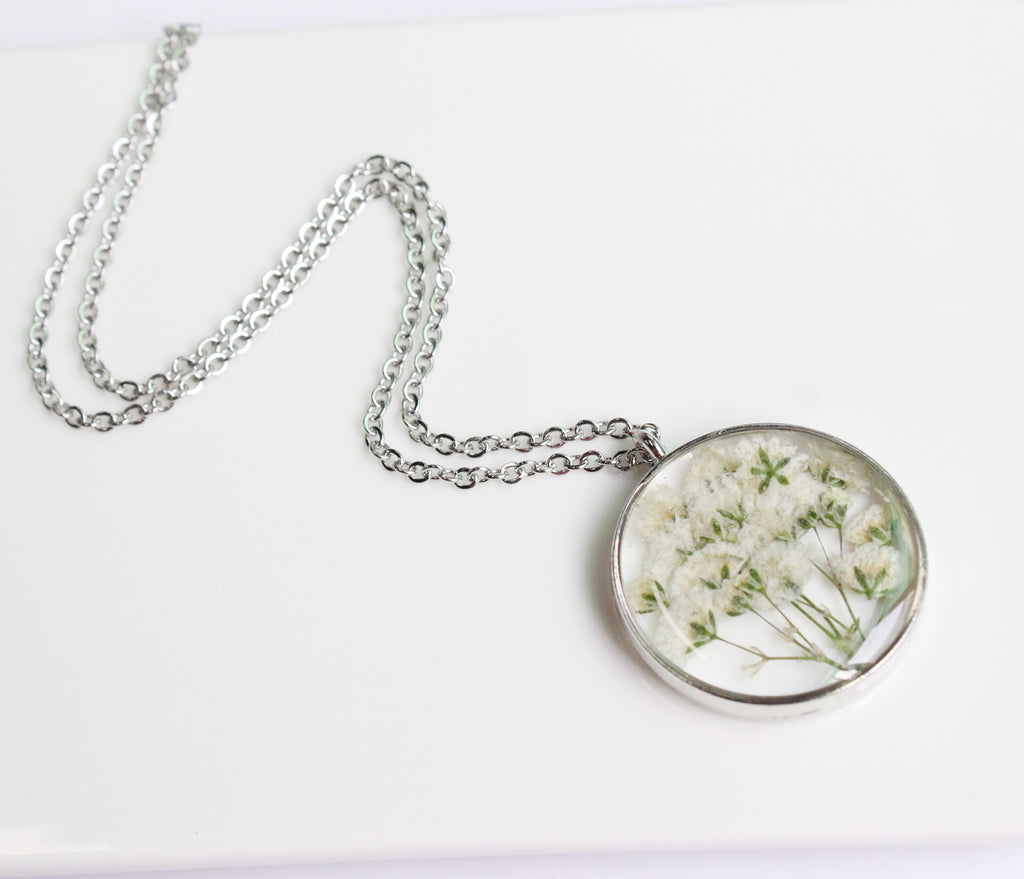1pcs pressed flower pendant necklace, flower jewelry wholesale