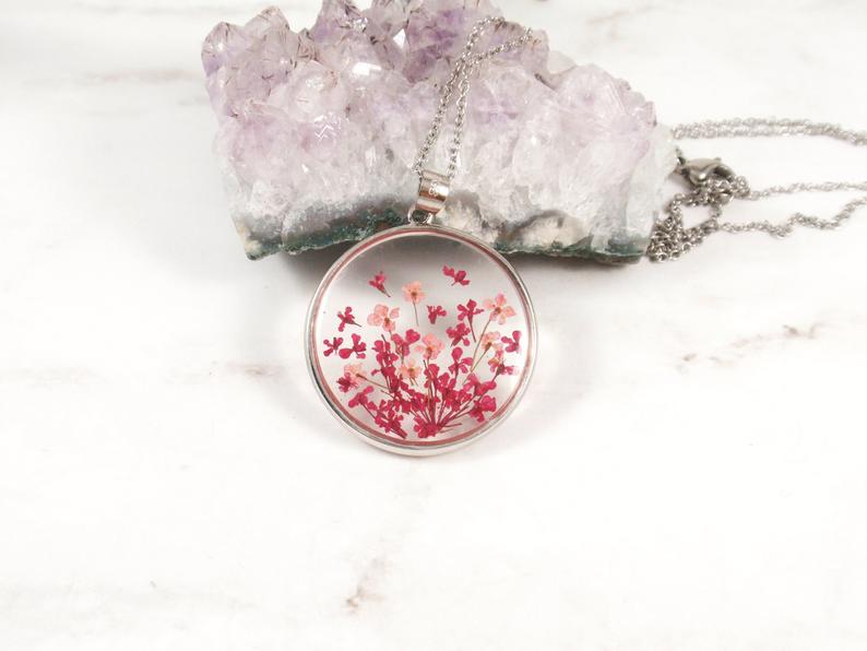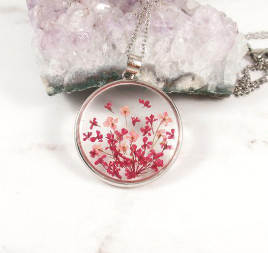 1pcs pressed flower pendant necklace, Real dried flower jewelry wholesale