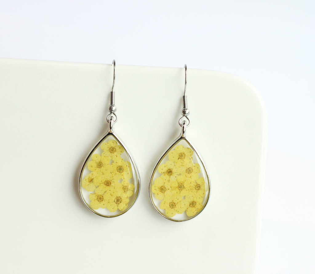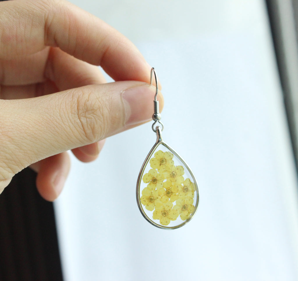 1pcs Teardrop pressed flower pendant jewelry necklace Earrings