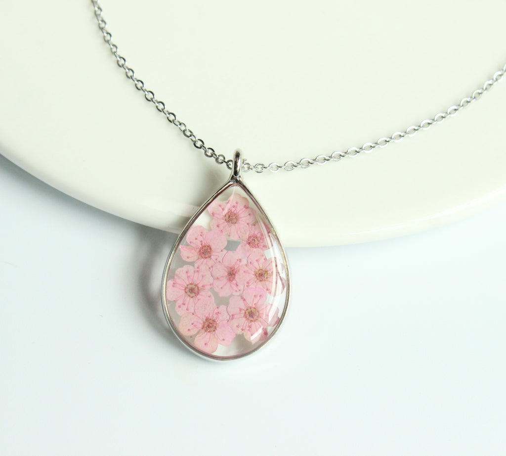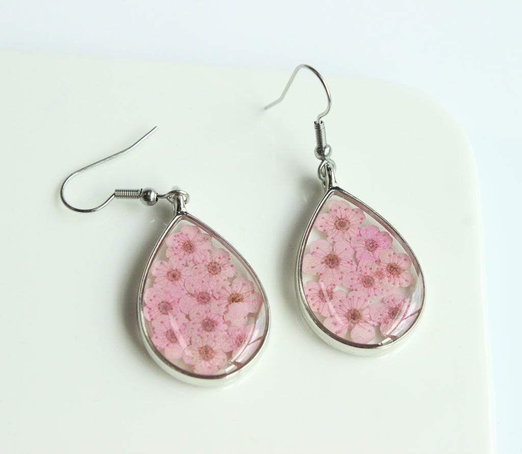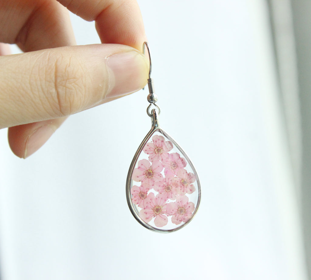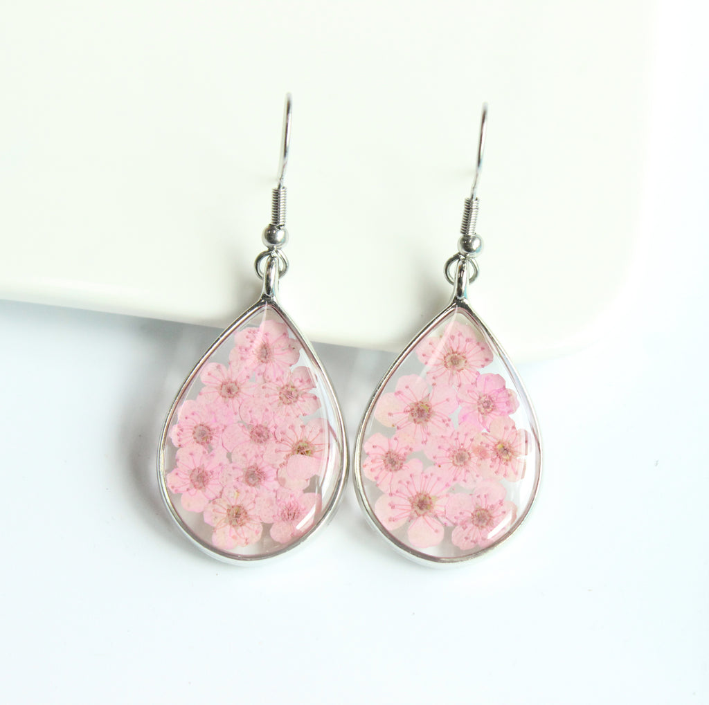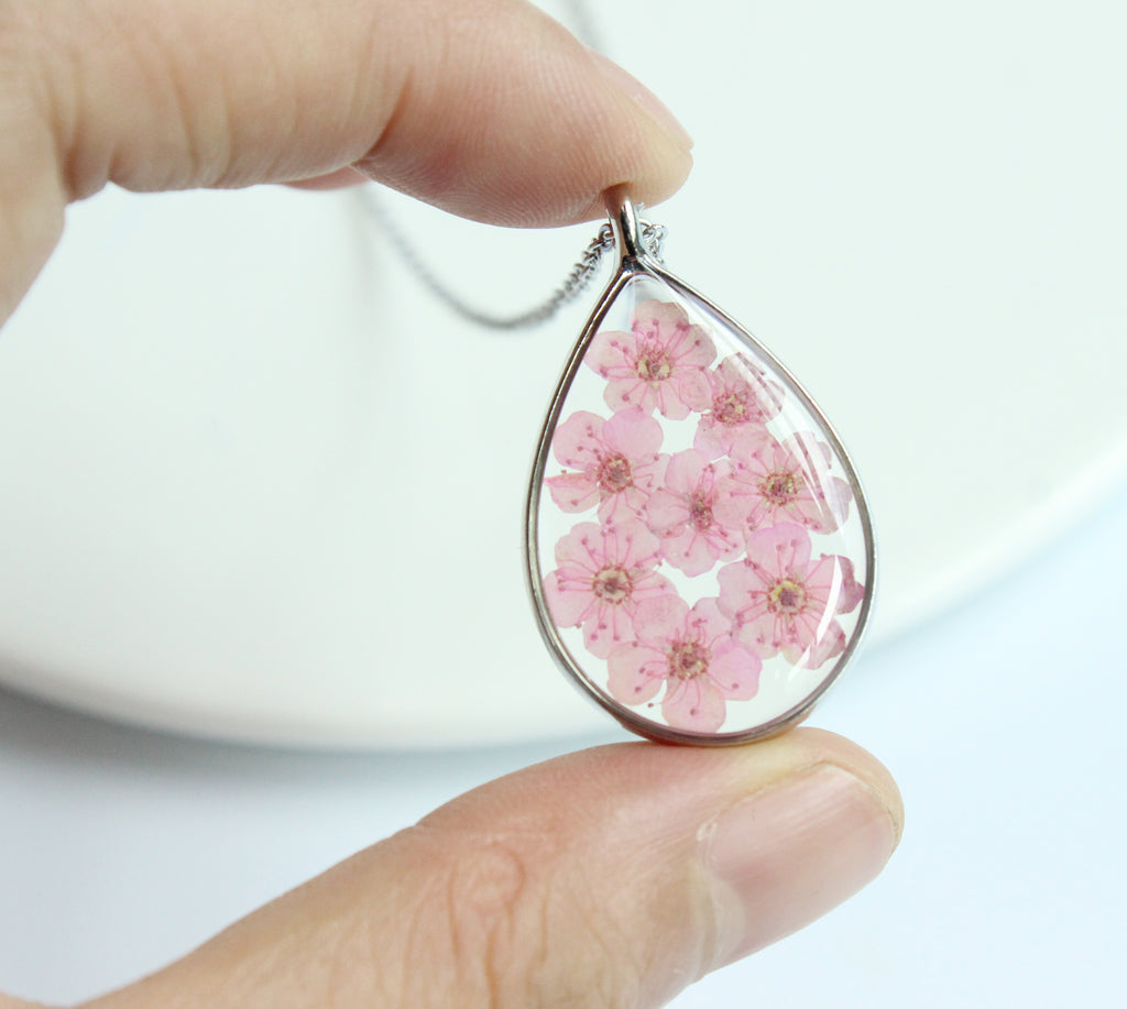 1pcs Teardrop pressed flower pendant jewelry necklace Earrings