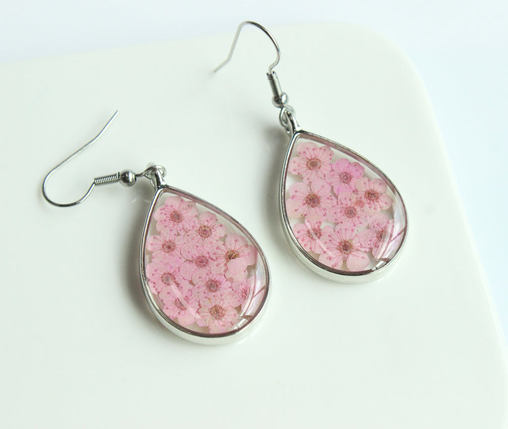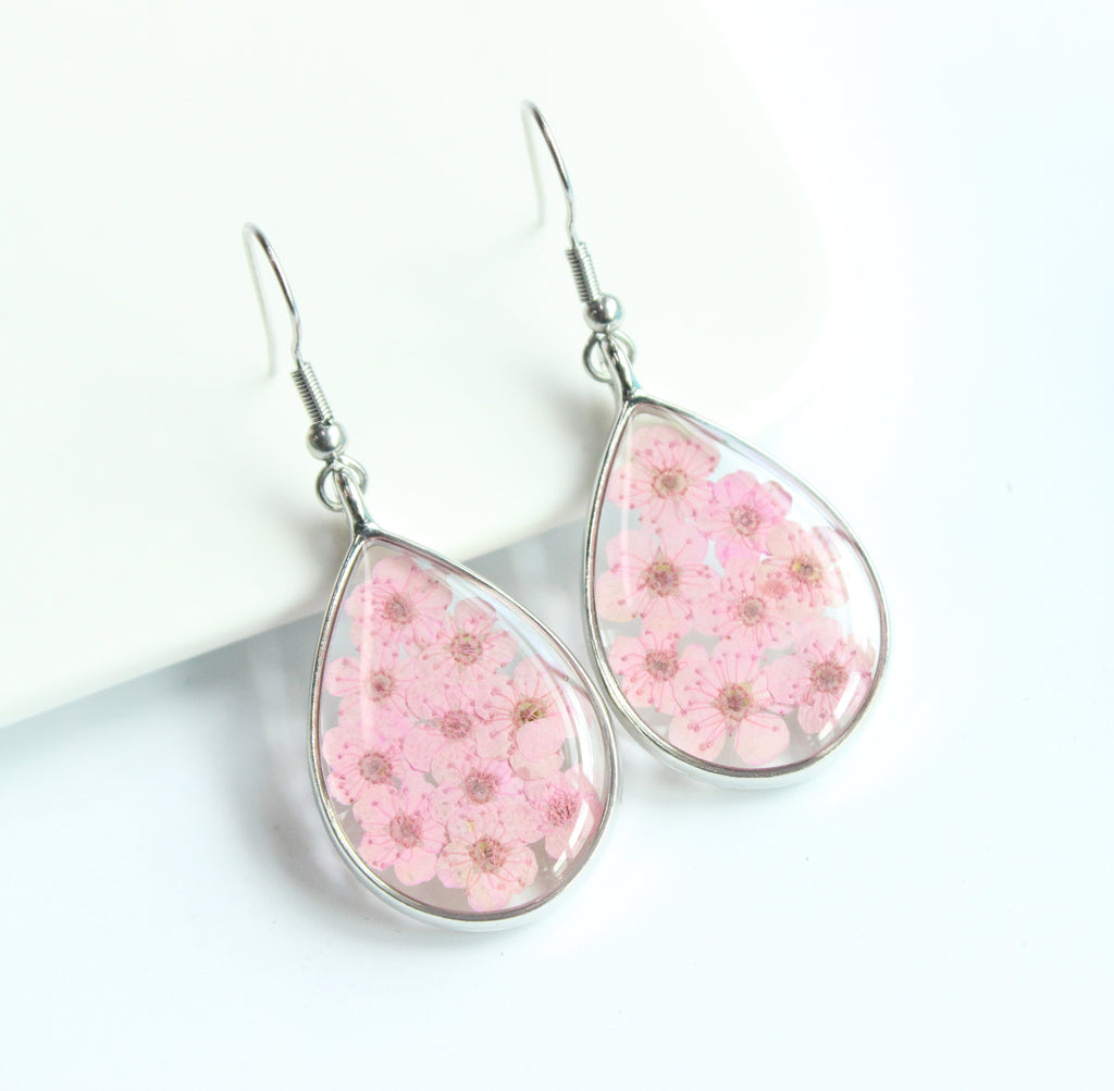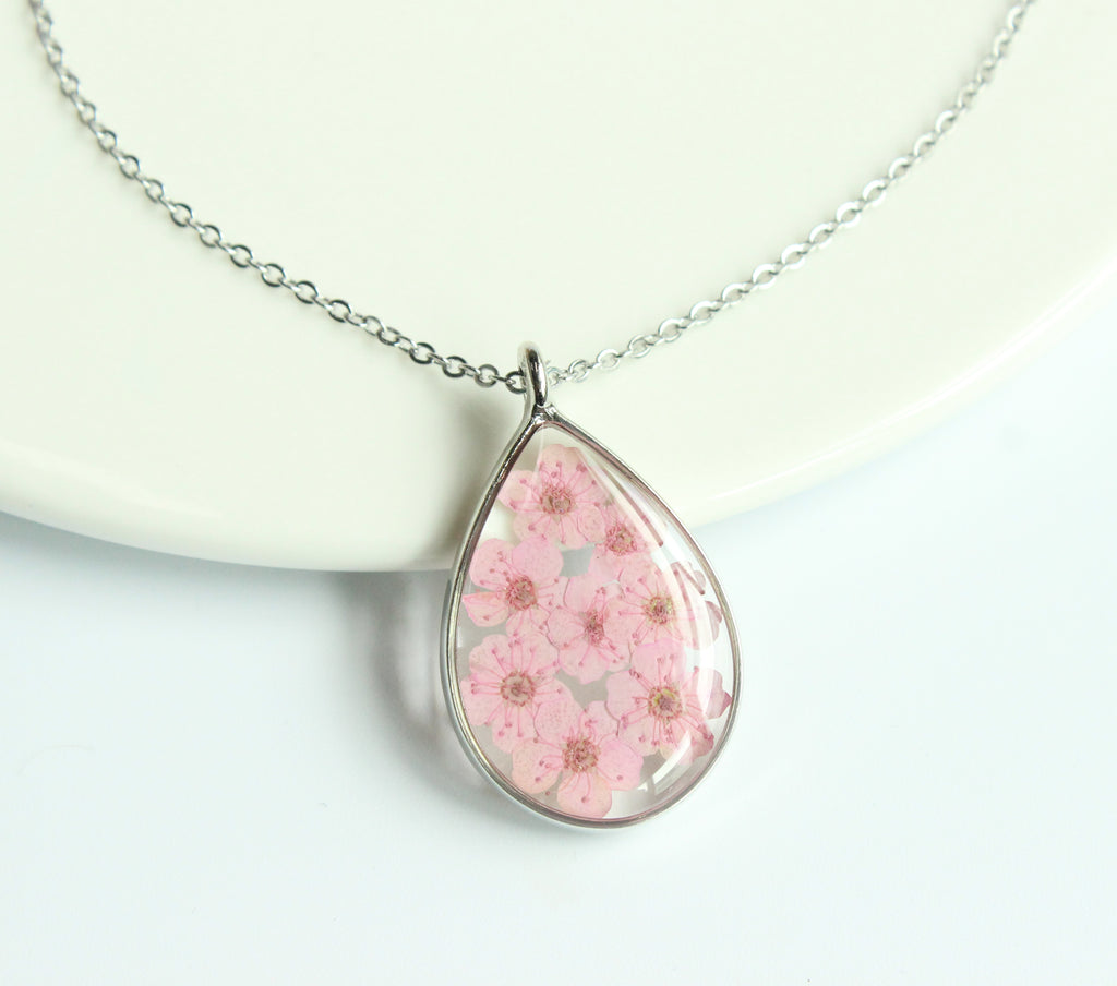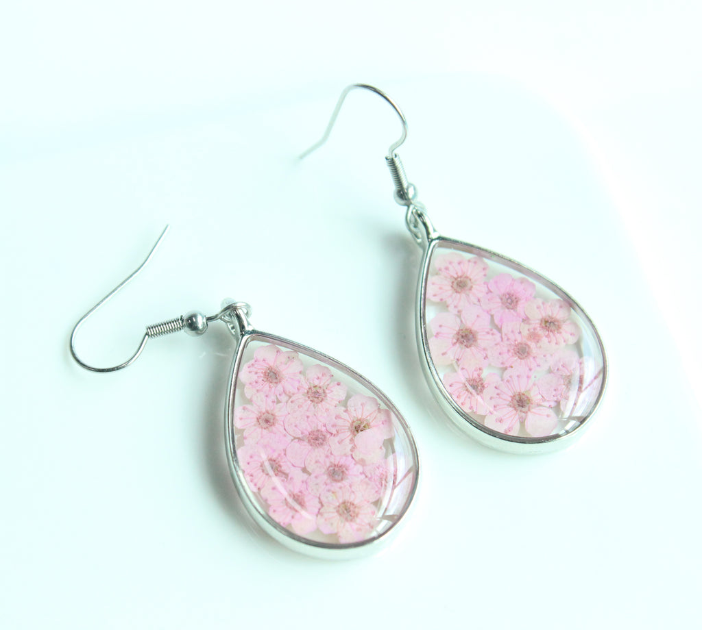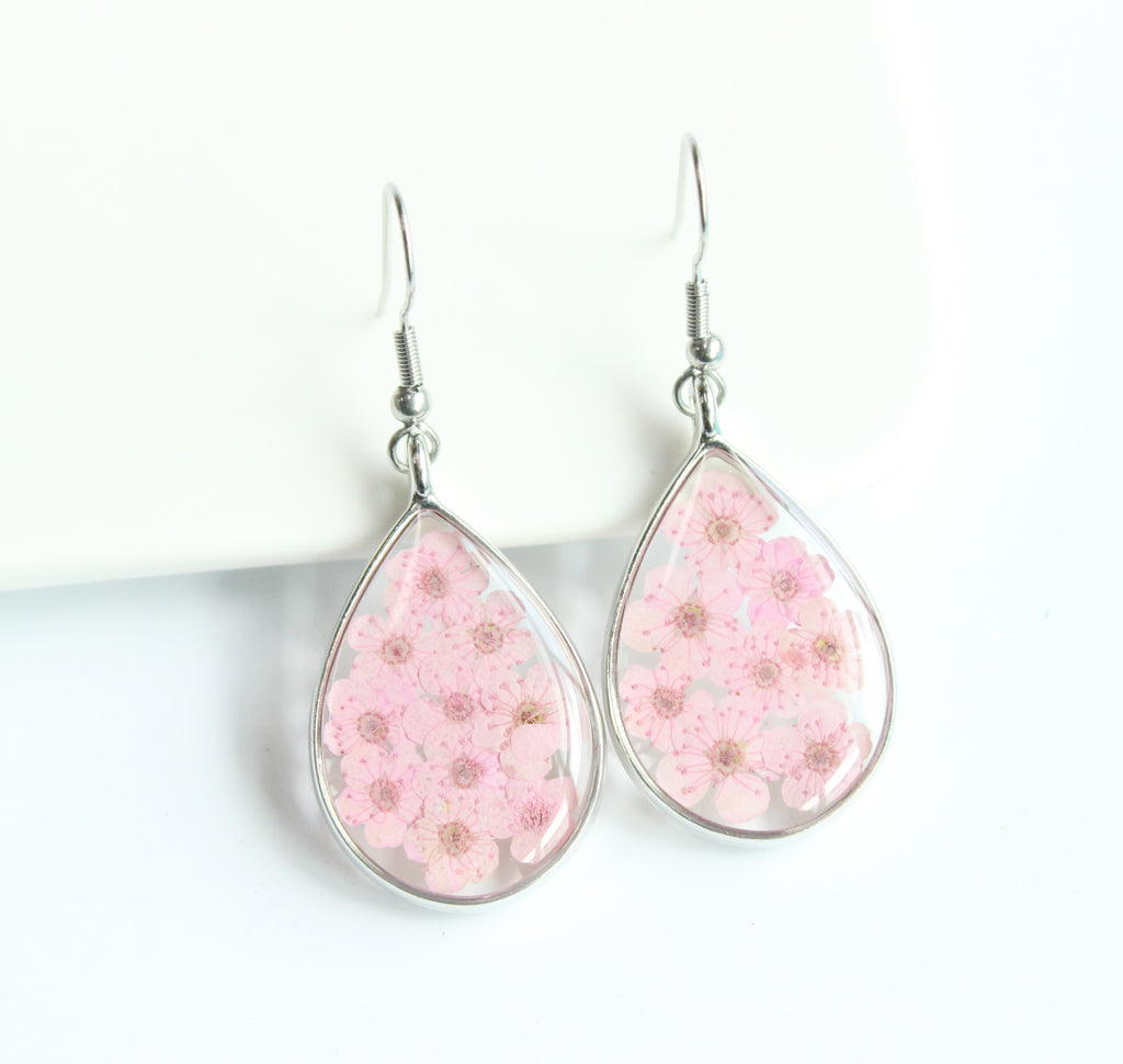 1pcs Teardrop pressed flower pendant jewelry necklace Earrings