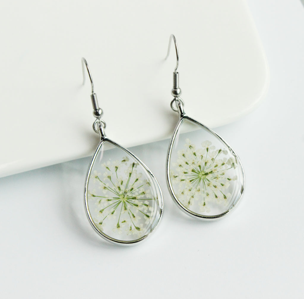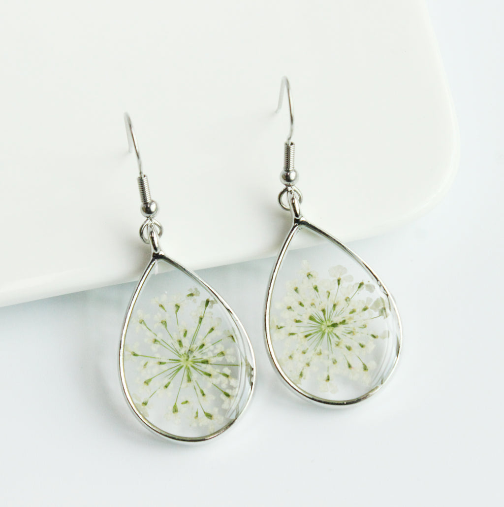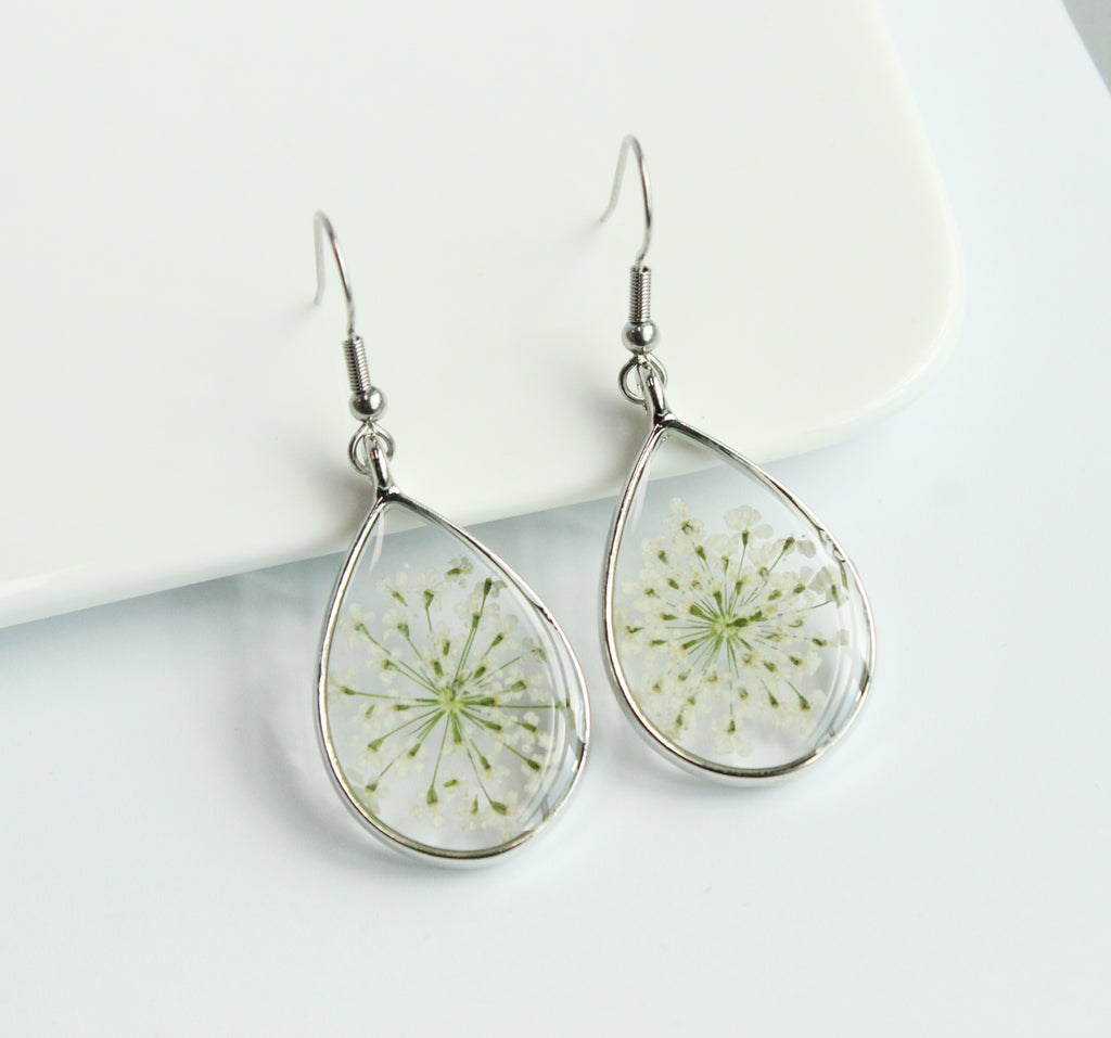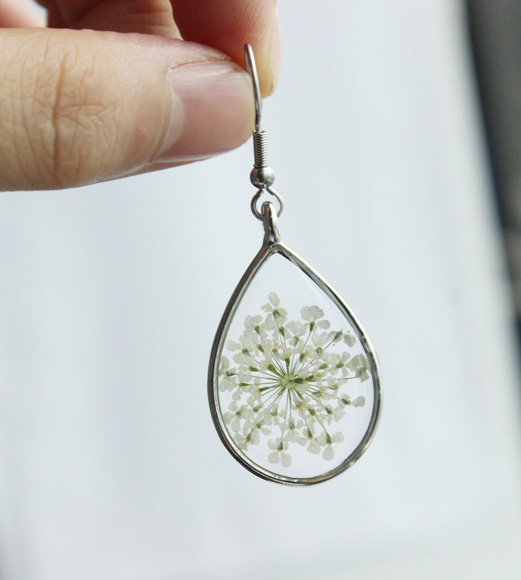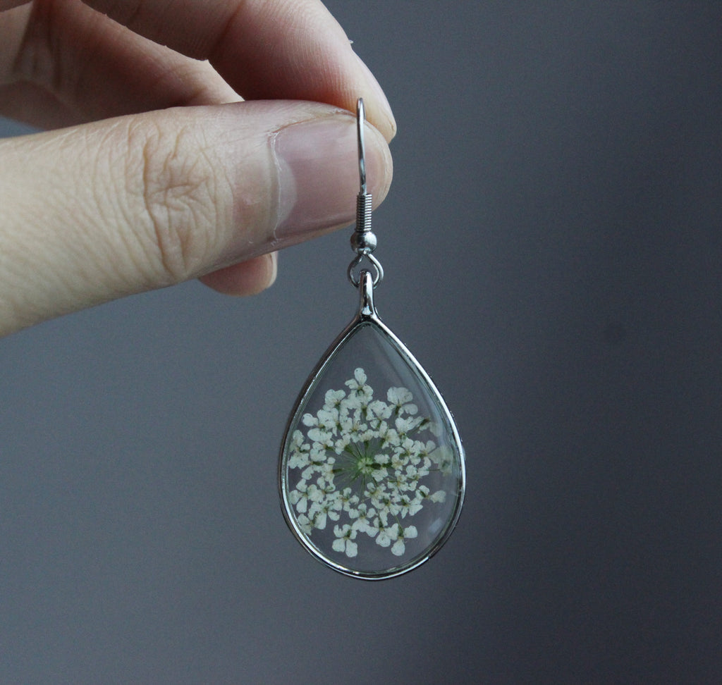 1pcs Teardrop pressed flower pendant jewelry necklace Earrings
