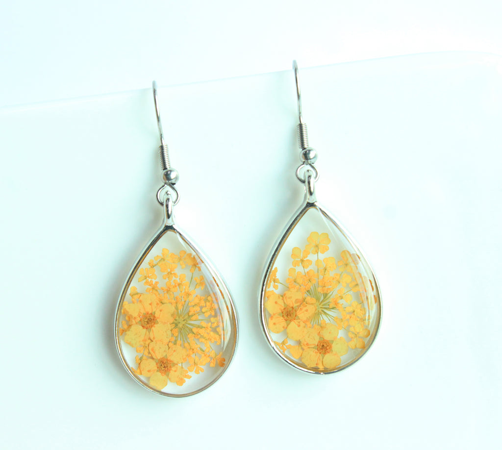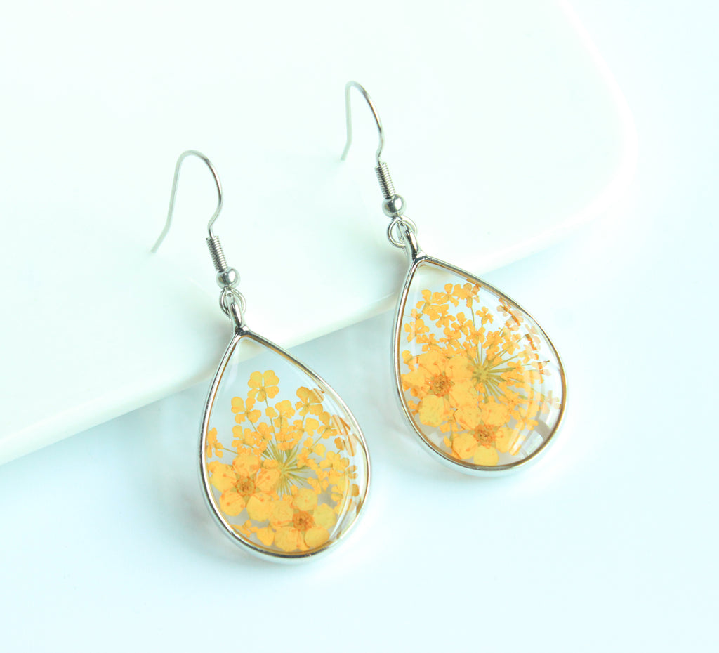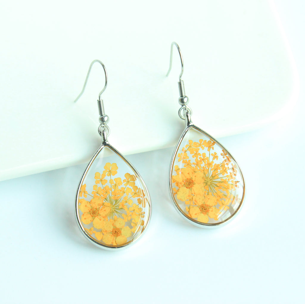 1pcs Teardrop pressed flower pendant jewelry necklace Earrings