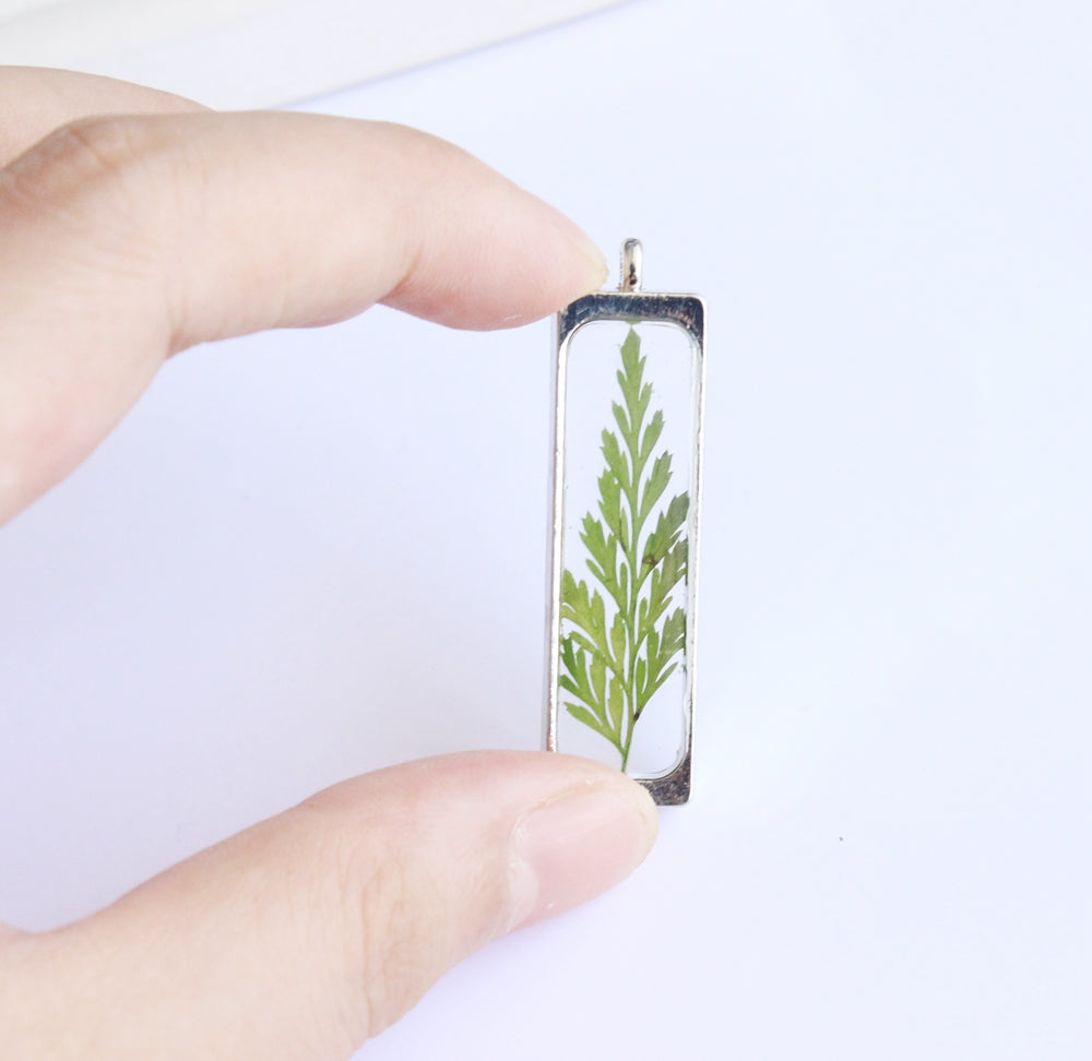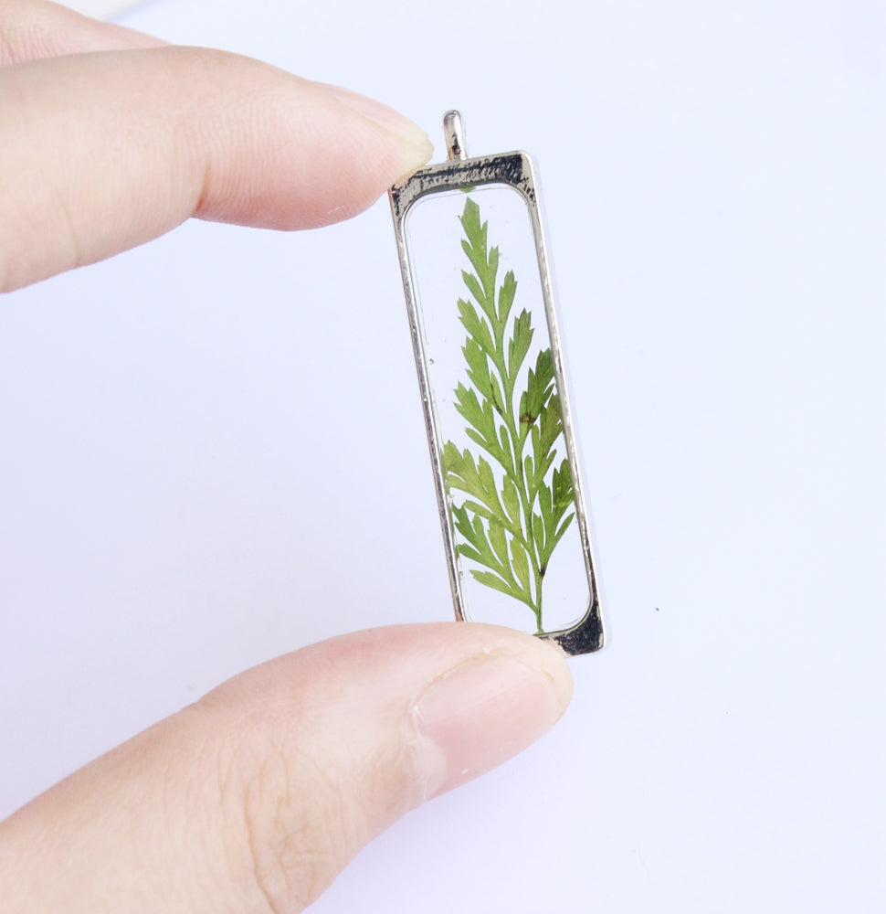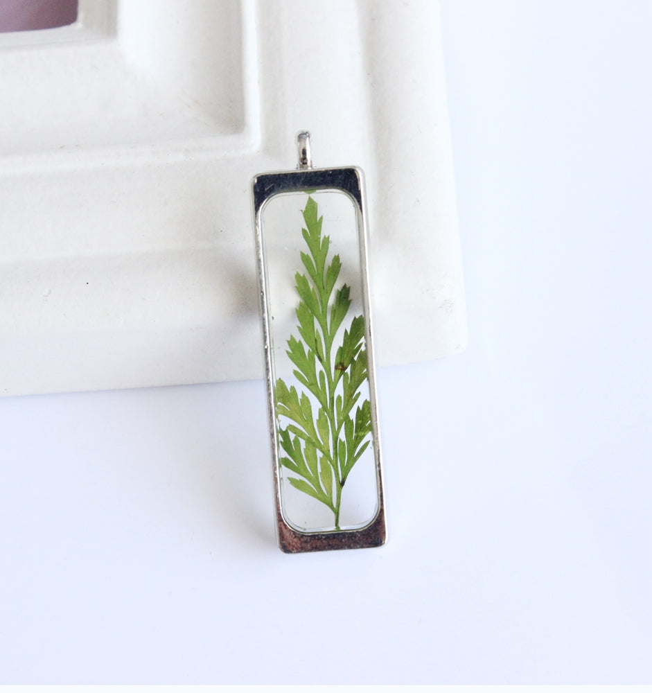 1pcs Handmade Rectangular Resin Leaves pressed flower pendant necklace