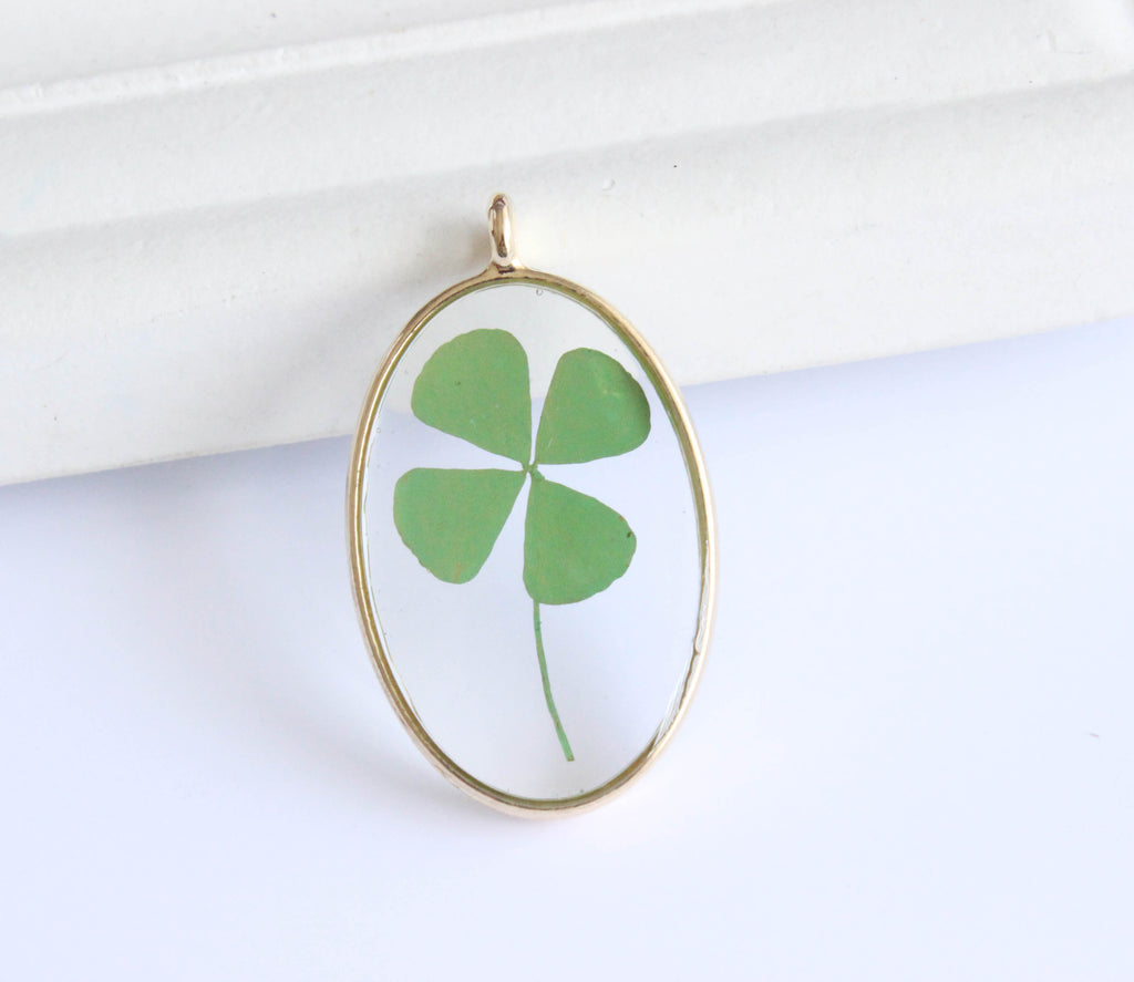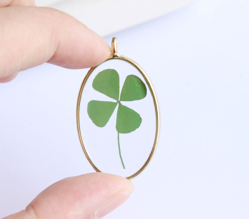 1pcs Handmade Resin Clover pressed flower pendant necklace