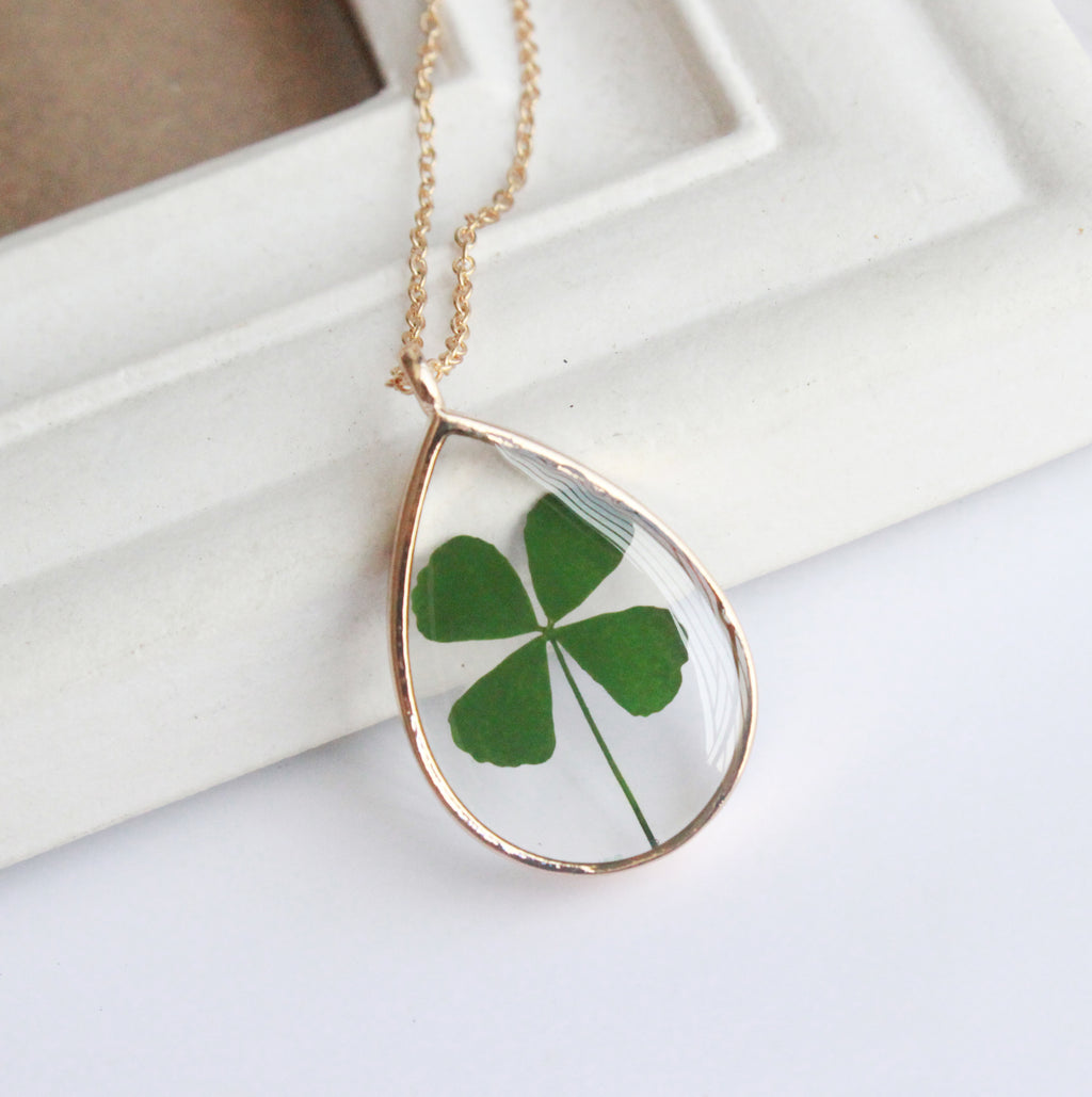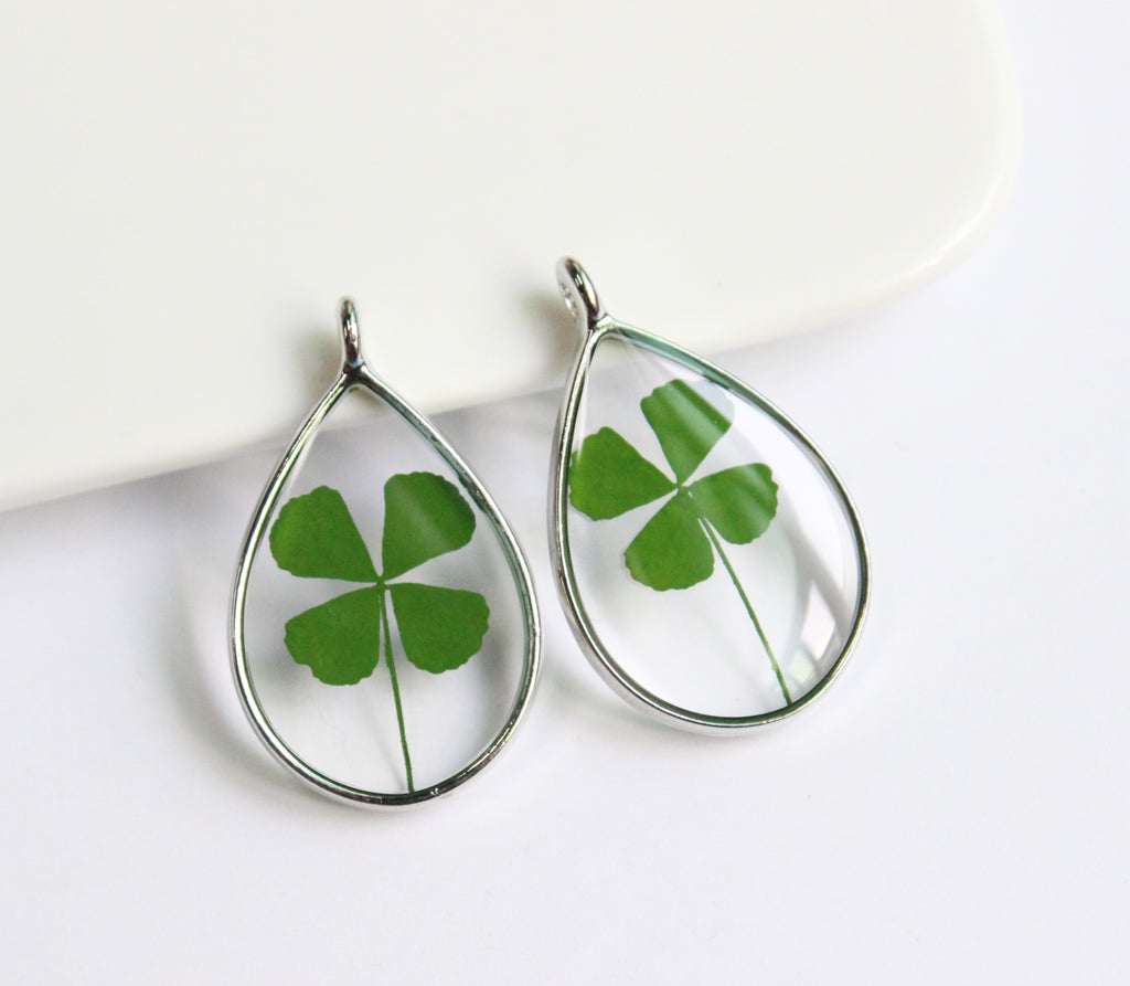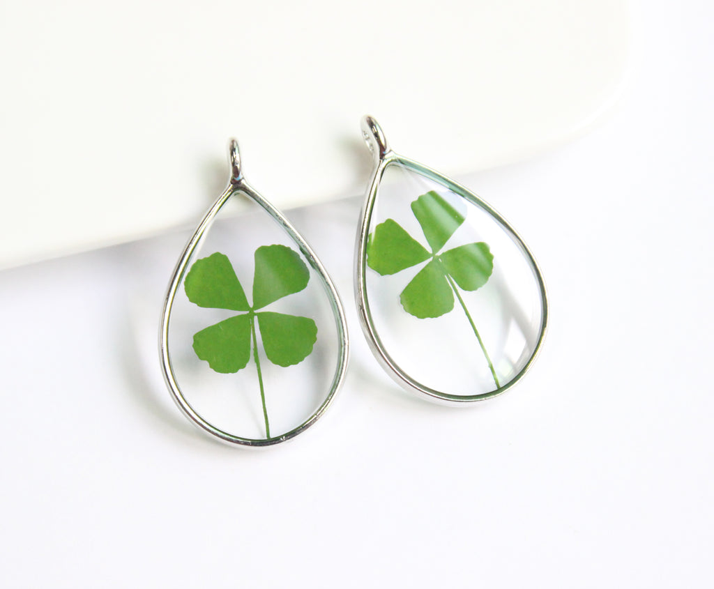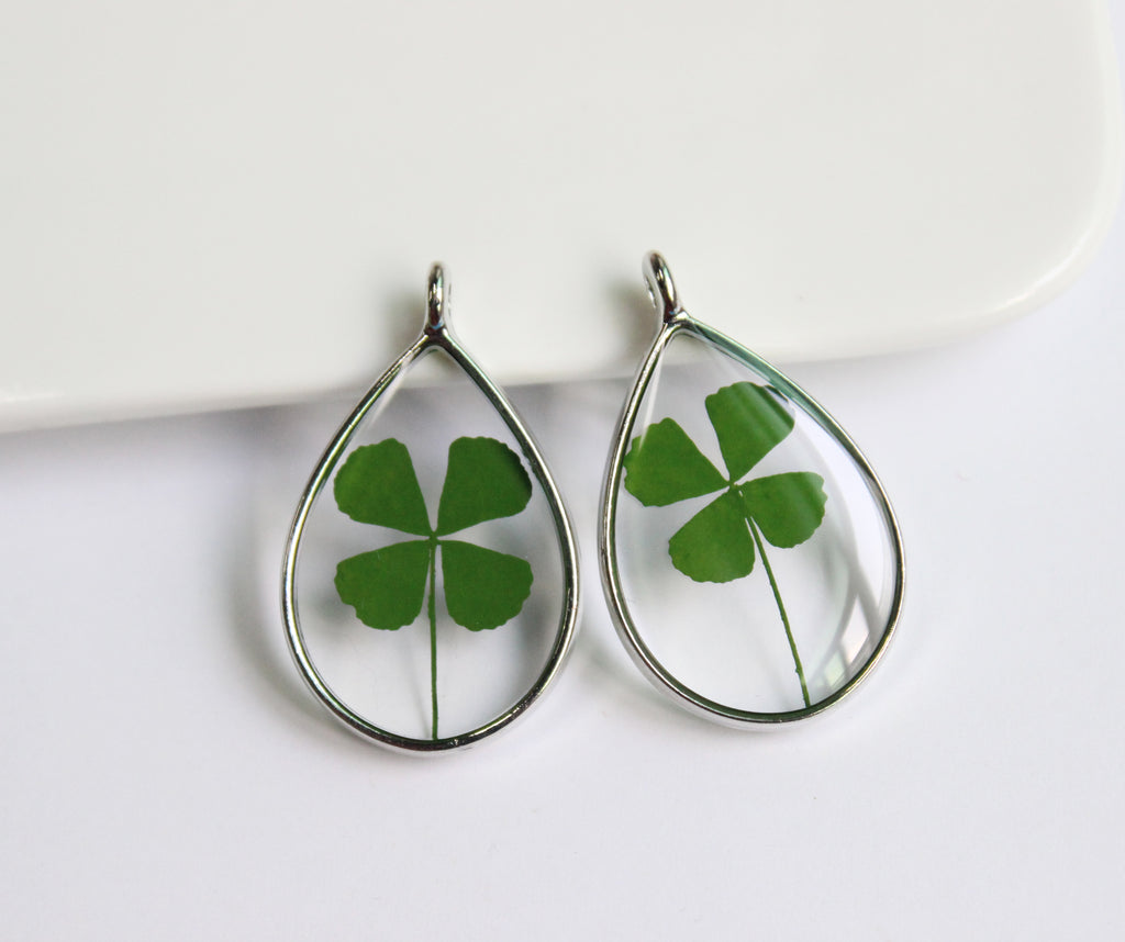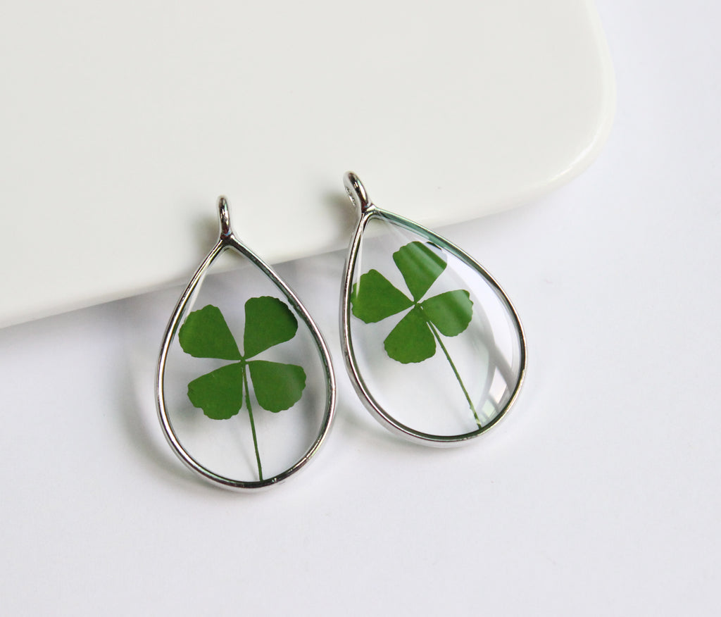 1pcs Handmade Teardrop Four leaf clover pressed flower pendant jewelry