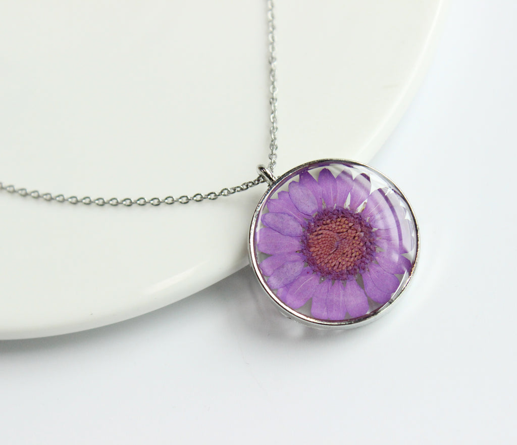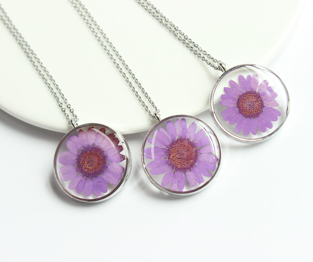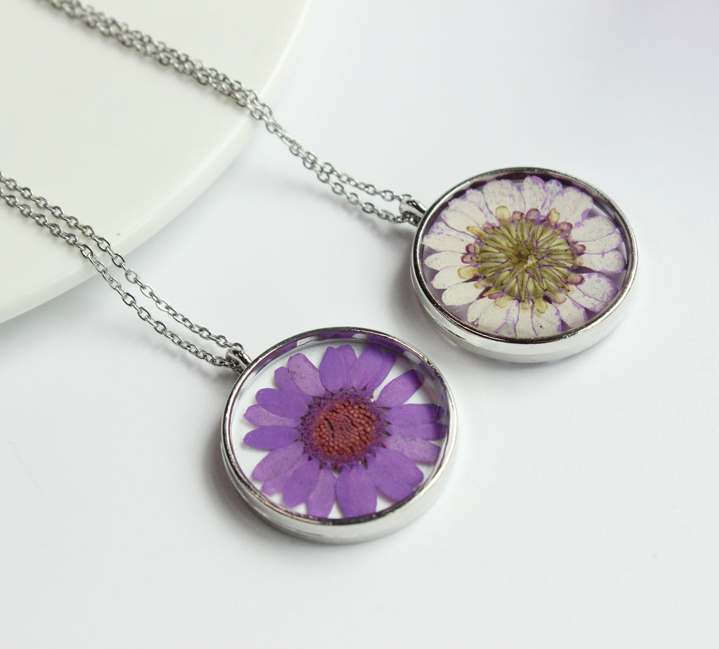 1pcs pressed flower jewelry, Real chrysanthemum pressed flower pendant necklace