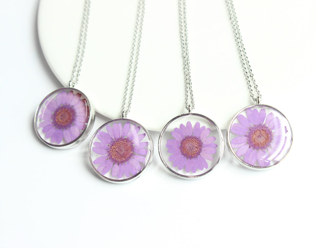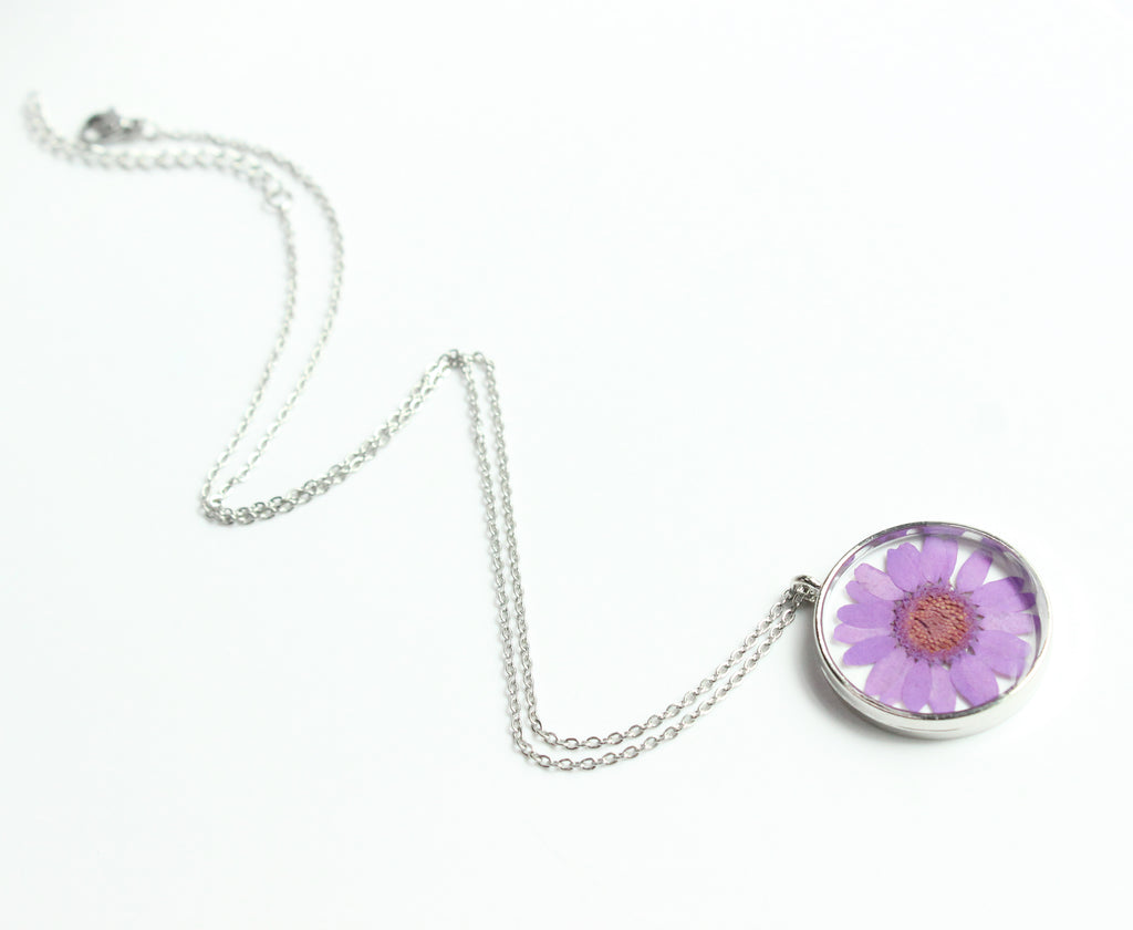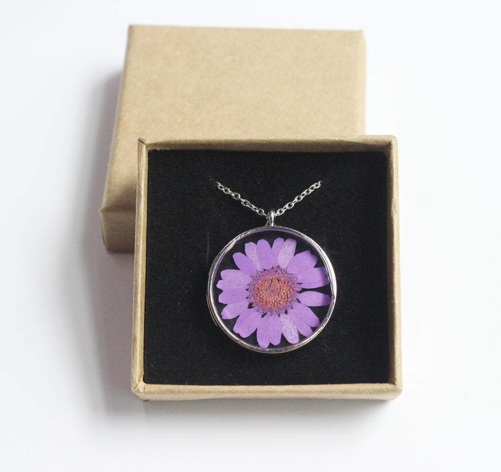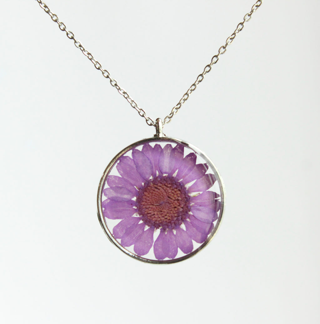 1pcs pressed flower jewelry, Real chrysanthemum pressed flower pendant necklace