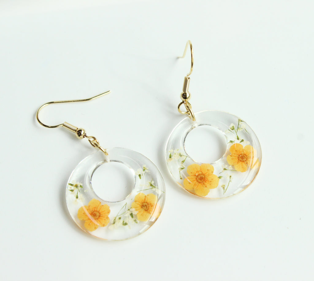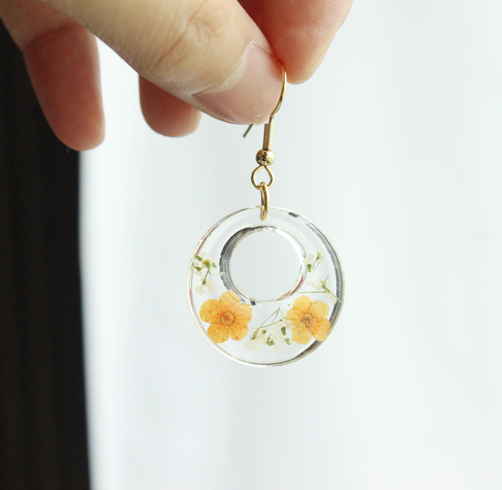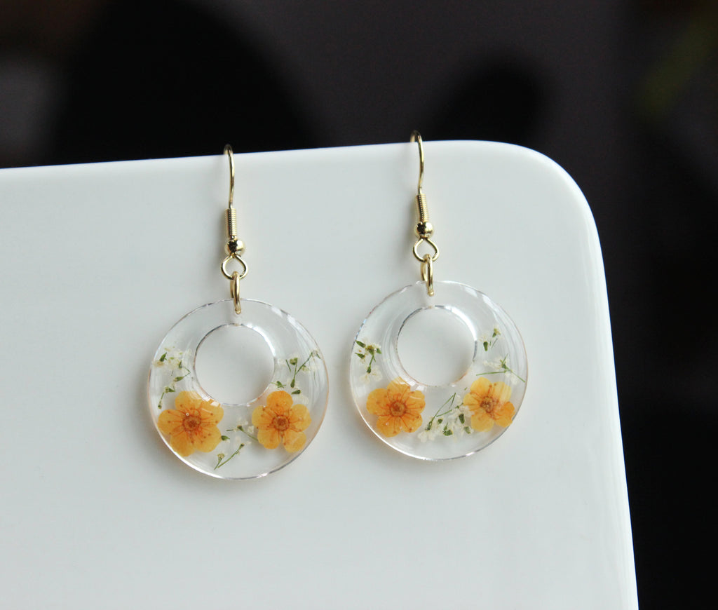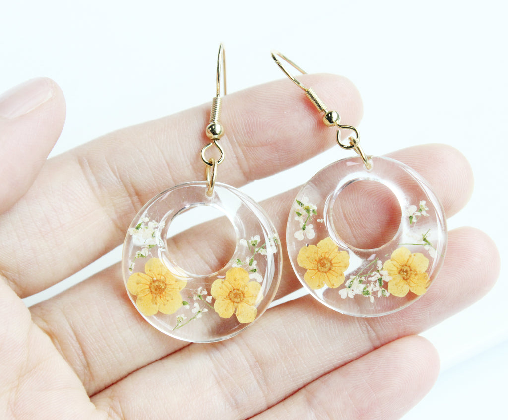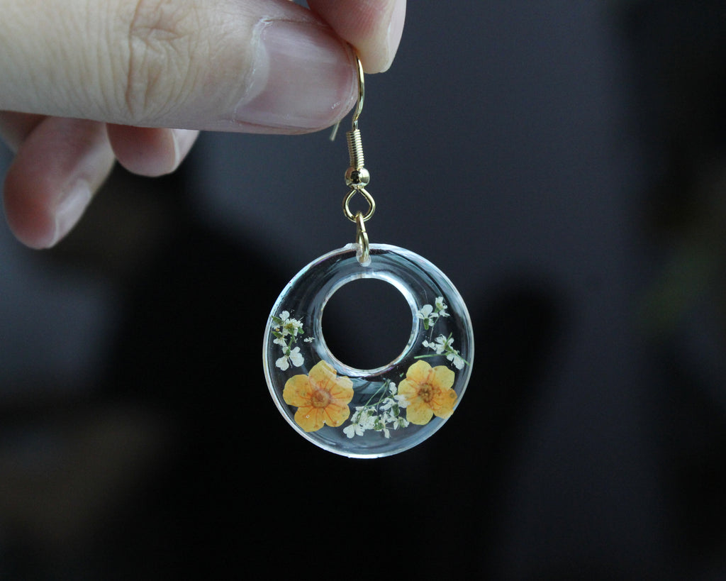 d) Material: Resin, dried flower