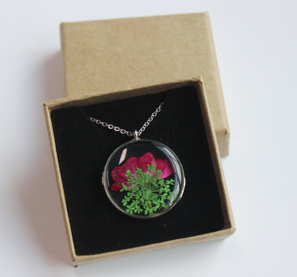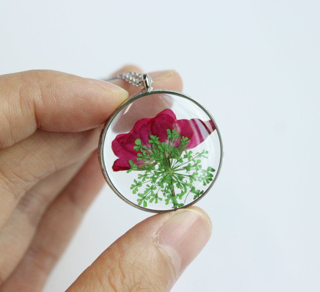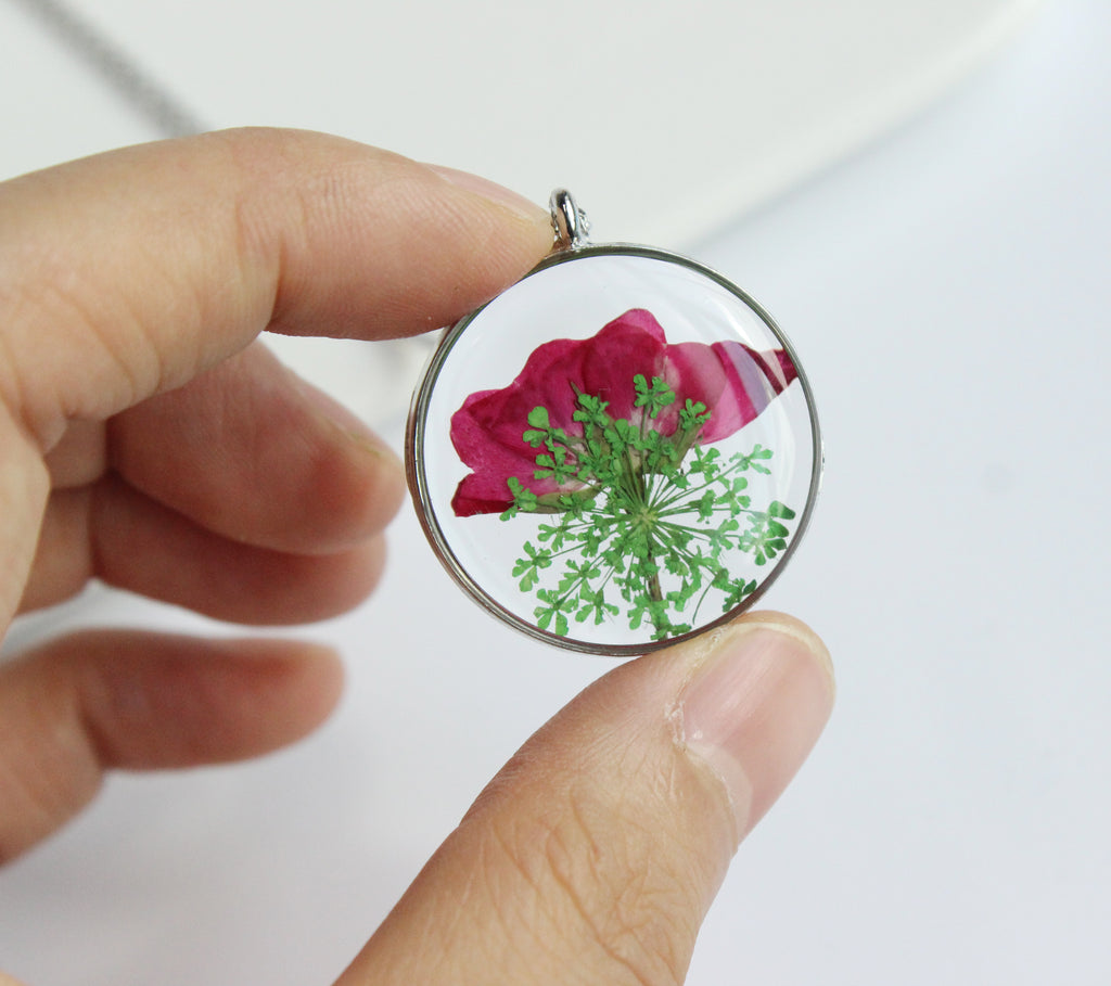 1pcs Rose flower pressed flower pendant necklace, Real Flower Jewelry
