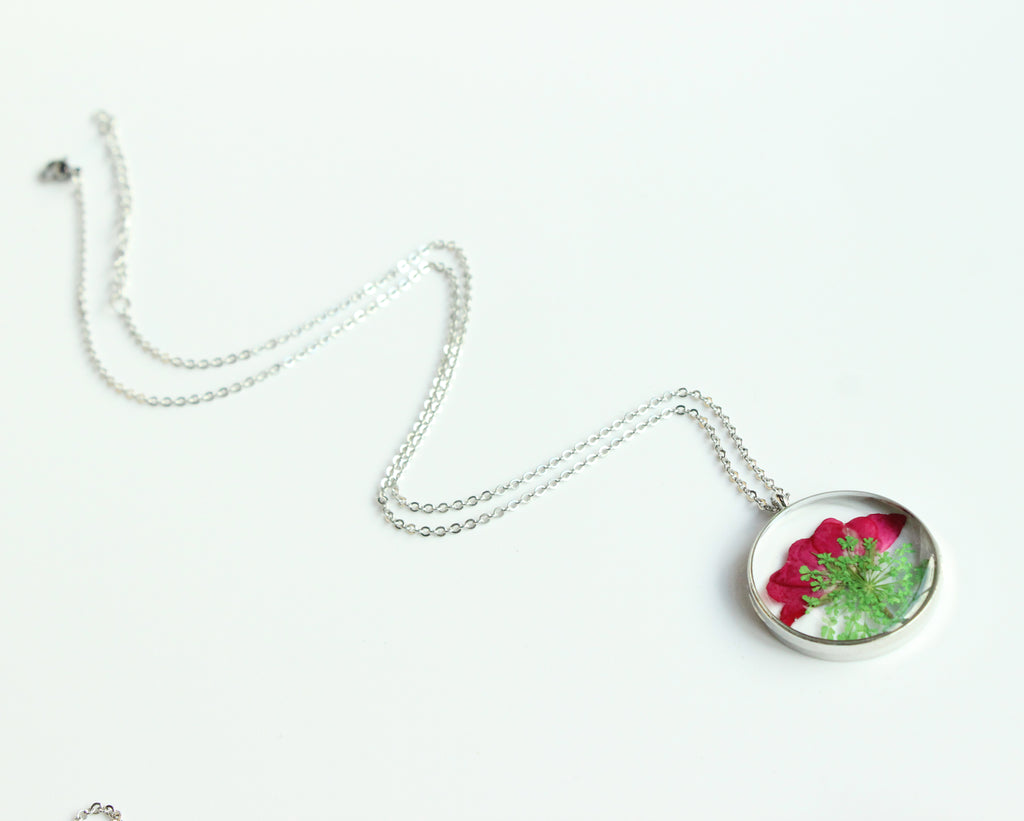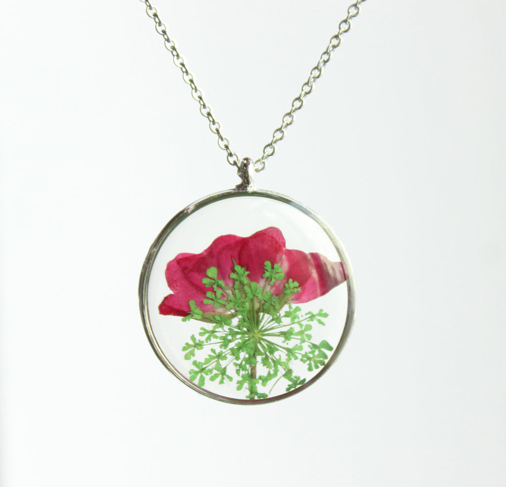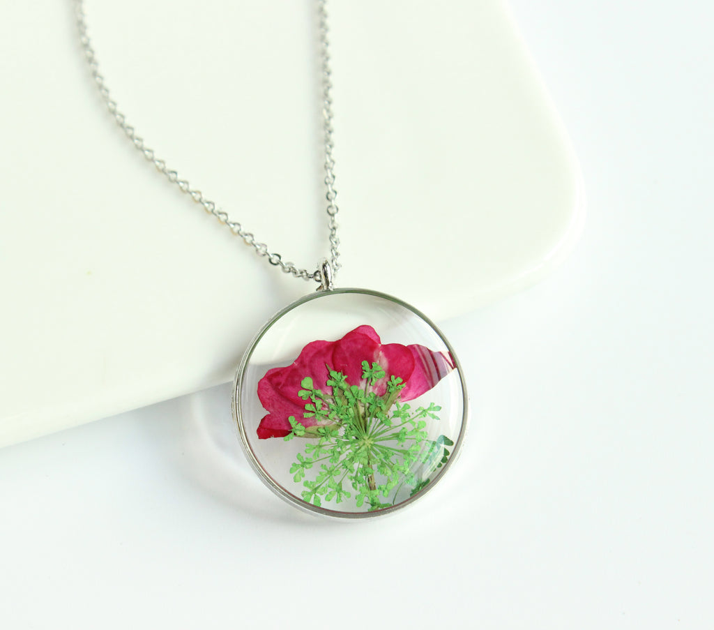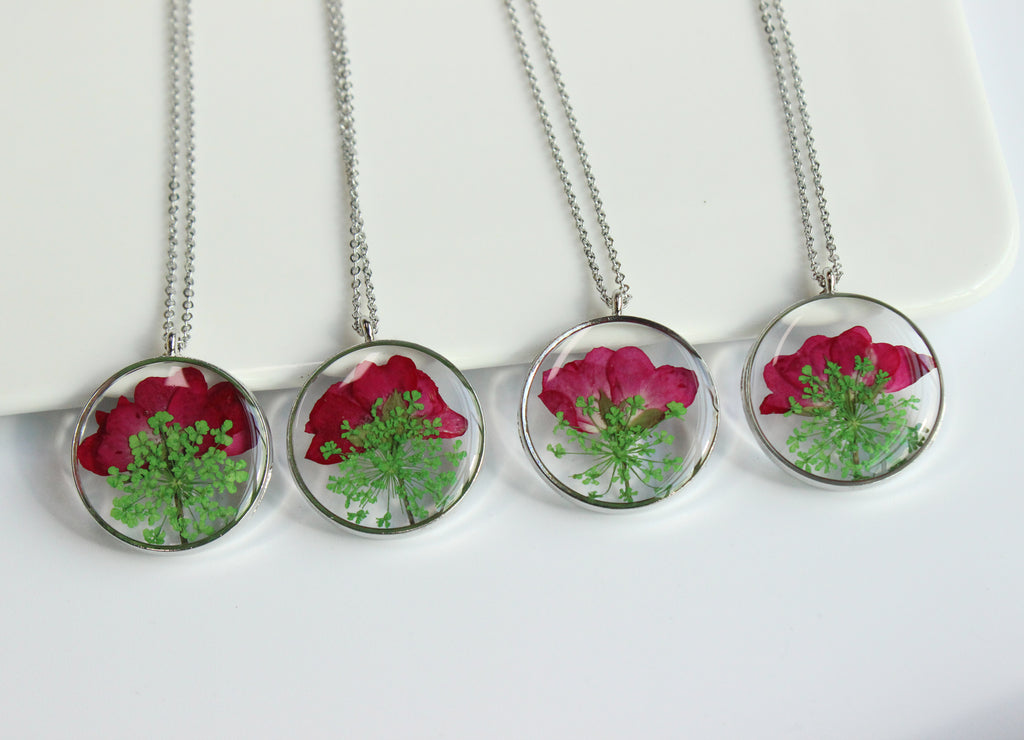1pcs Rose flower pressed flower pendant necklace, Real Flower Jewelry