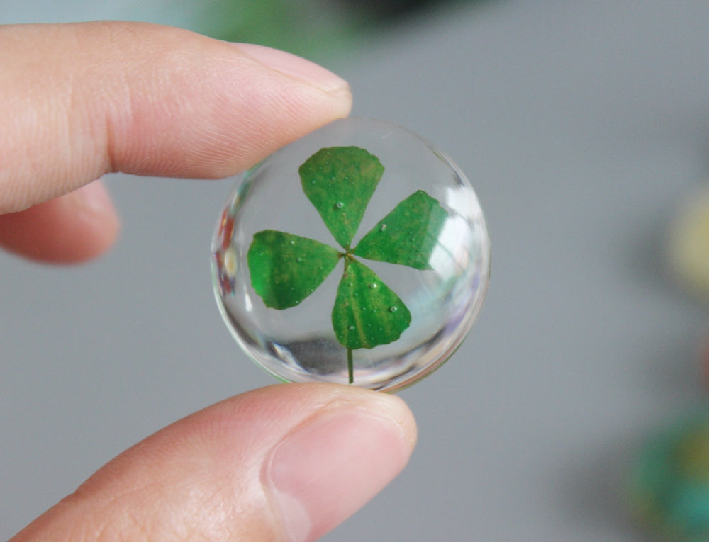 2pcs Handmade Resin 25mm Resin Cabochons,real Clover Pressed flower Pendant jewelry necklace