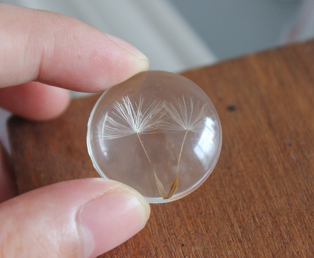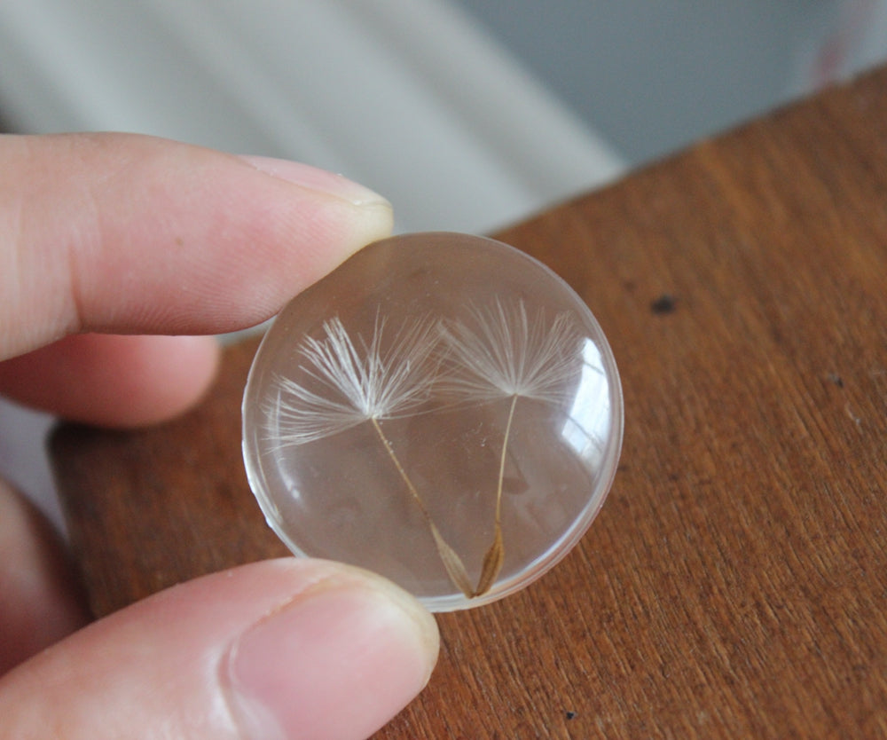 2pcs 25mm Handmade Resin real Dandelion Pressed flower Pendant jewelry necklace