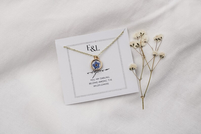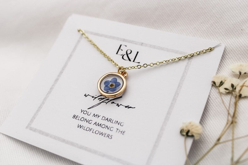 Forget-Me-Not Pressed Wildflower Necklace | Resin Necklace | Dried Wildflower | Mother's Day Gift | Real Flower Jewelry