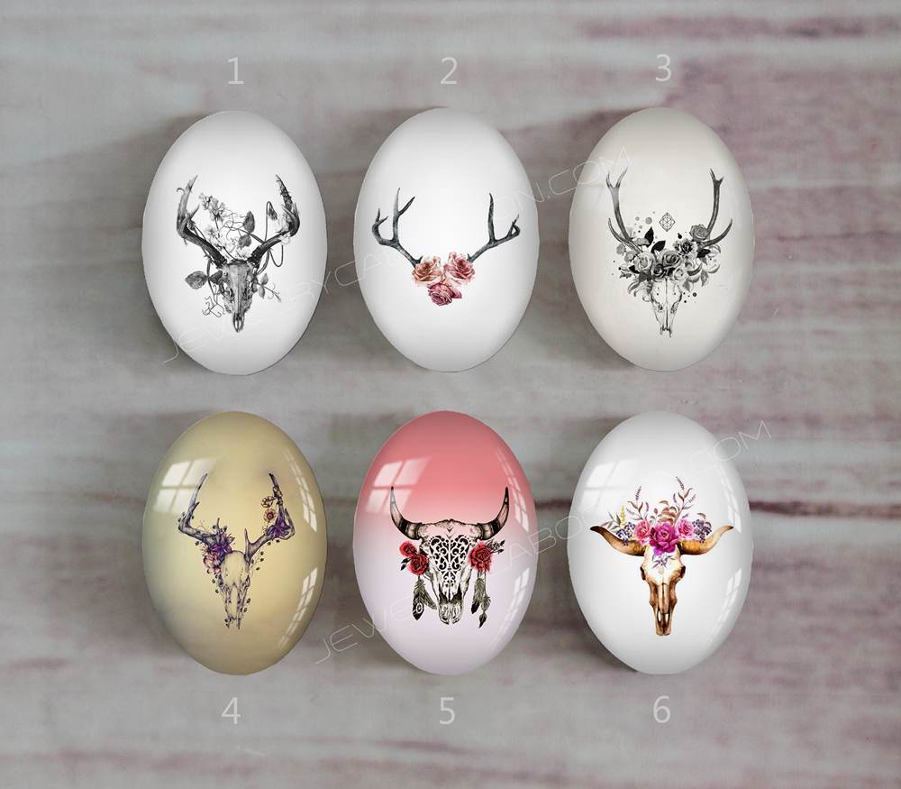 Handmade oval Photo Glass Cabochons Deer head A307