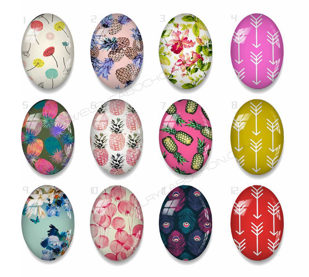 Handmade oval Photo Glass Cabochons geometric flower 45