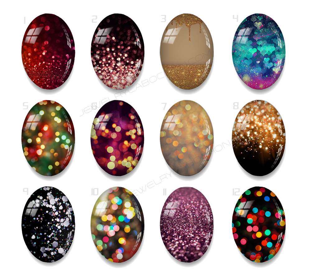 Handmade oval Photo Glass Cabochons Glitter A634