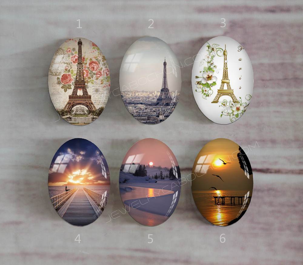 Handmade oval Photo Glass Cabochons Iron tower A479