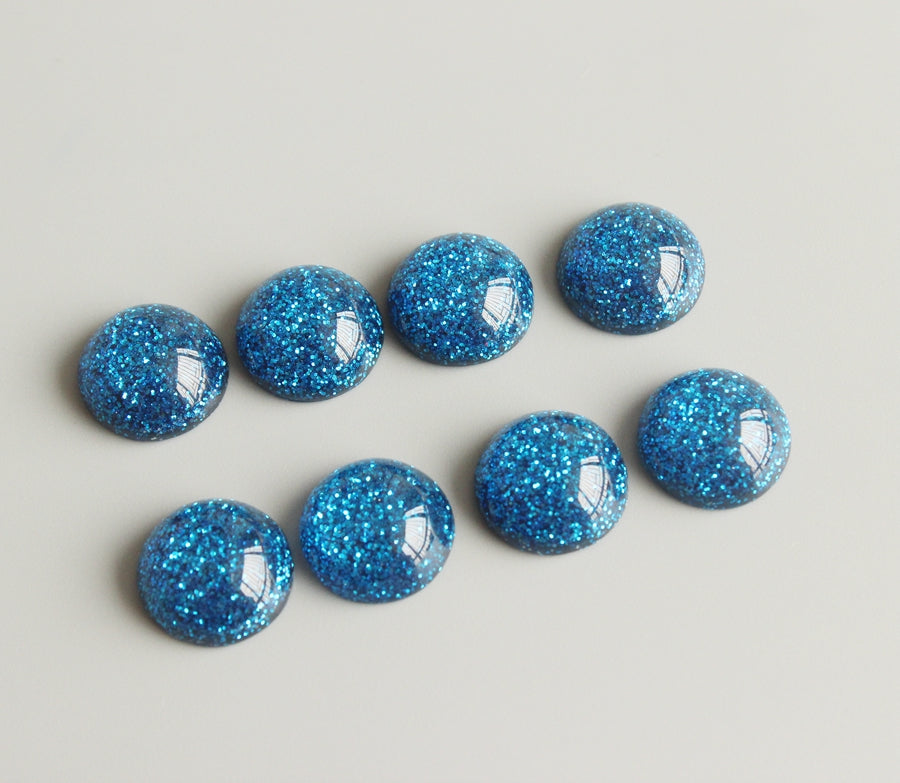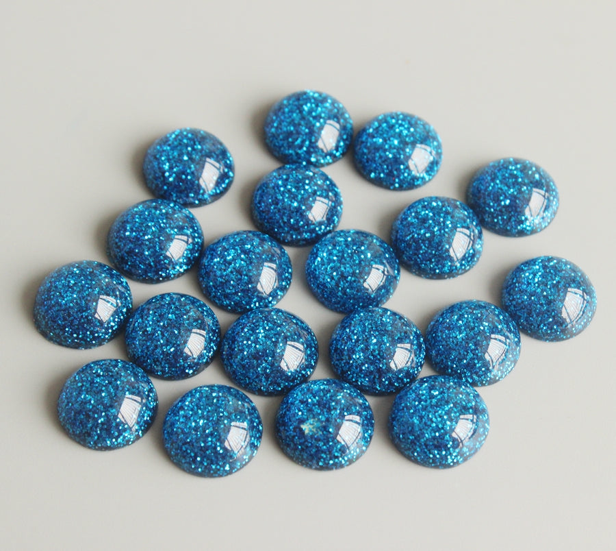20pcs 12mm Faux Druzy Resin Cabochons, Real blue Glitter Resin Cabochons