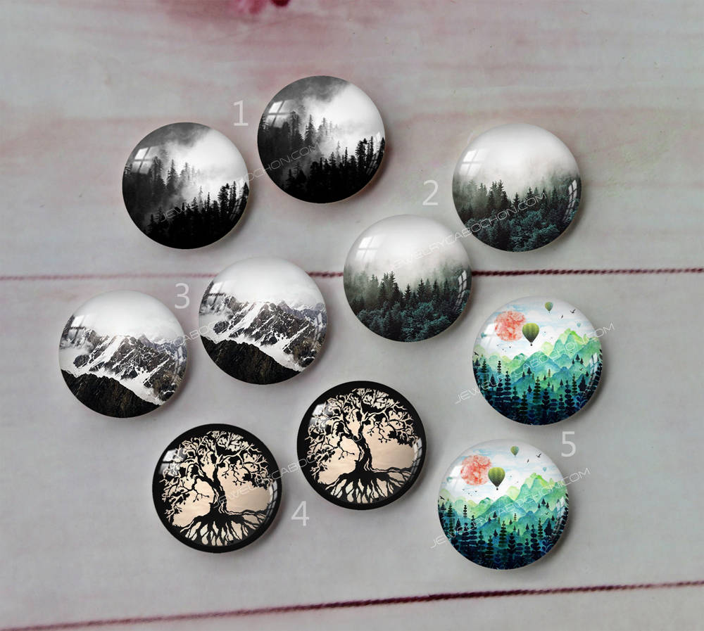 Handmade Round Photo Glass Cabachon forest Mountains A79