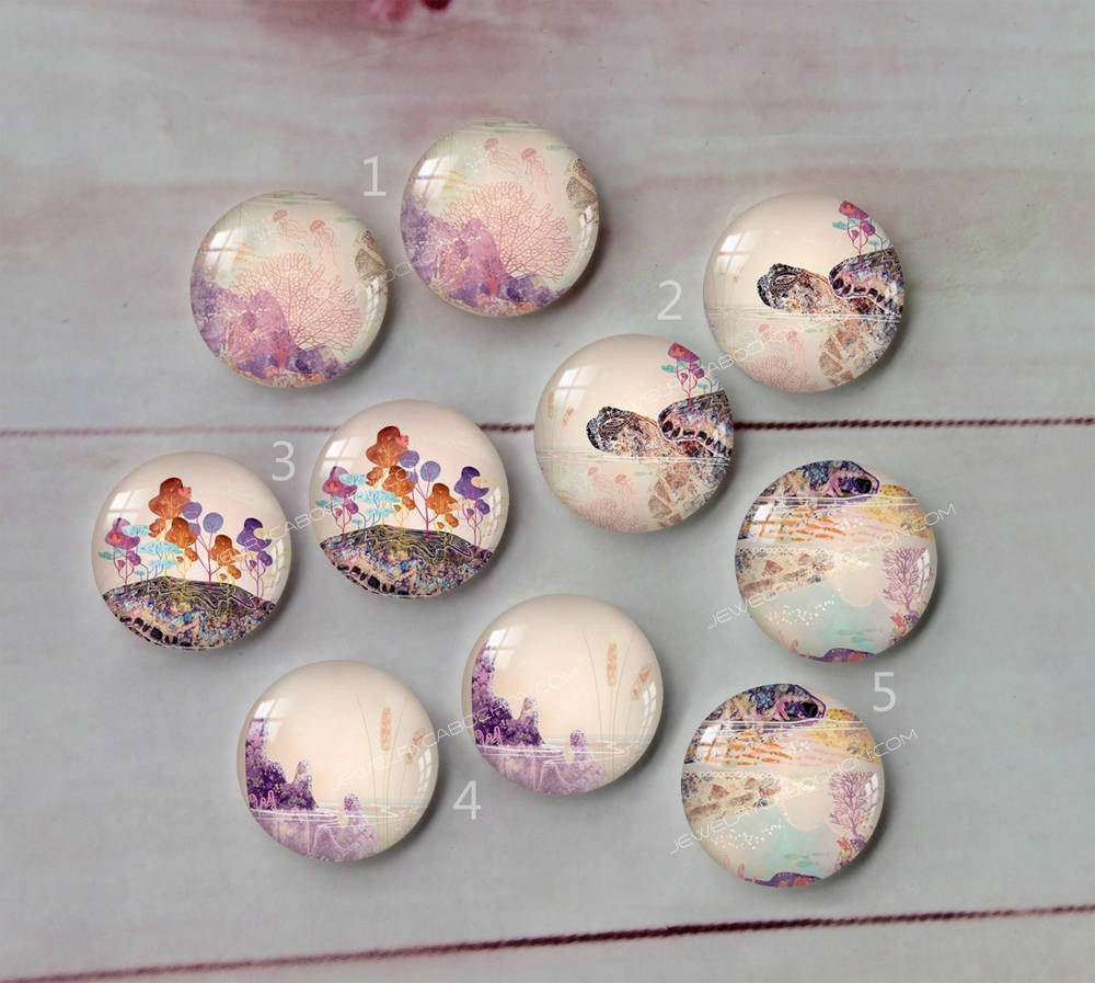 Handmade Round Photo Glass Cabachon illustration animal tortoise landscape A94