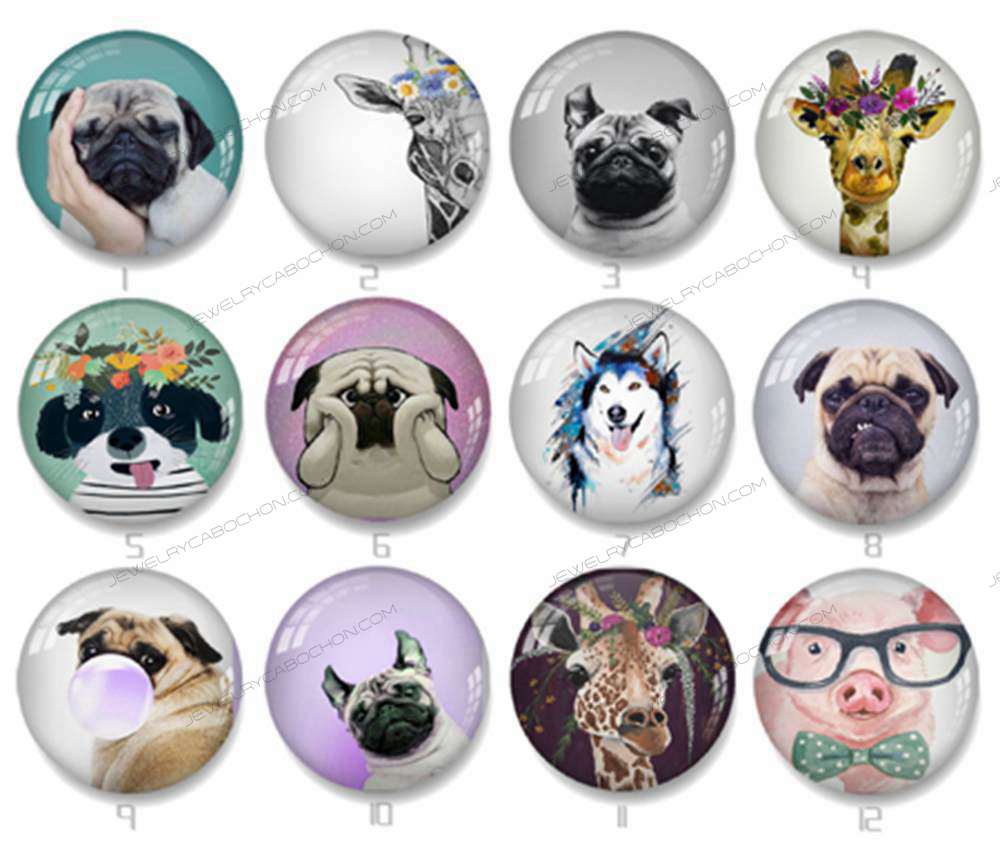 Handmade Round Photo Glass Cabochon animal 1439B